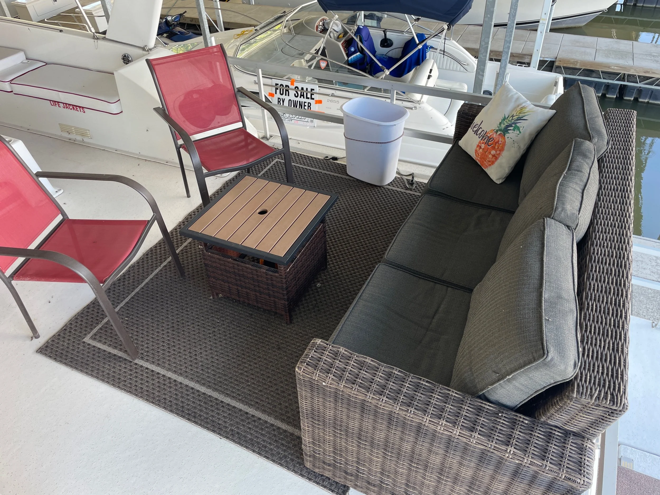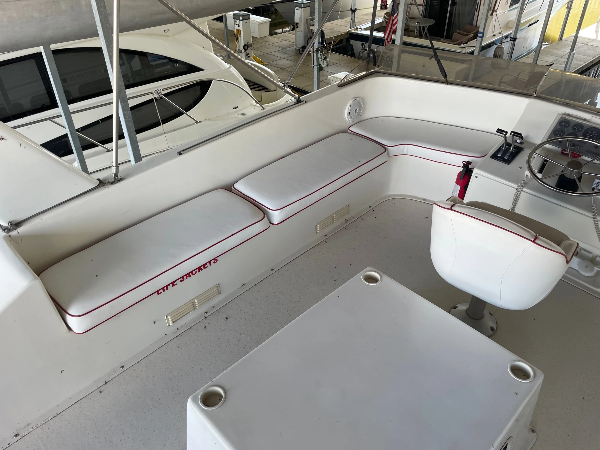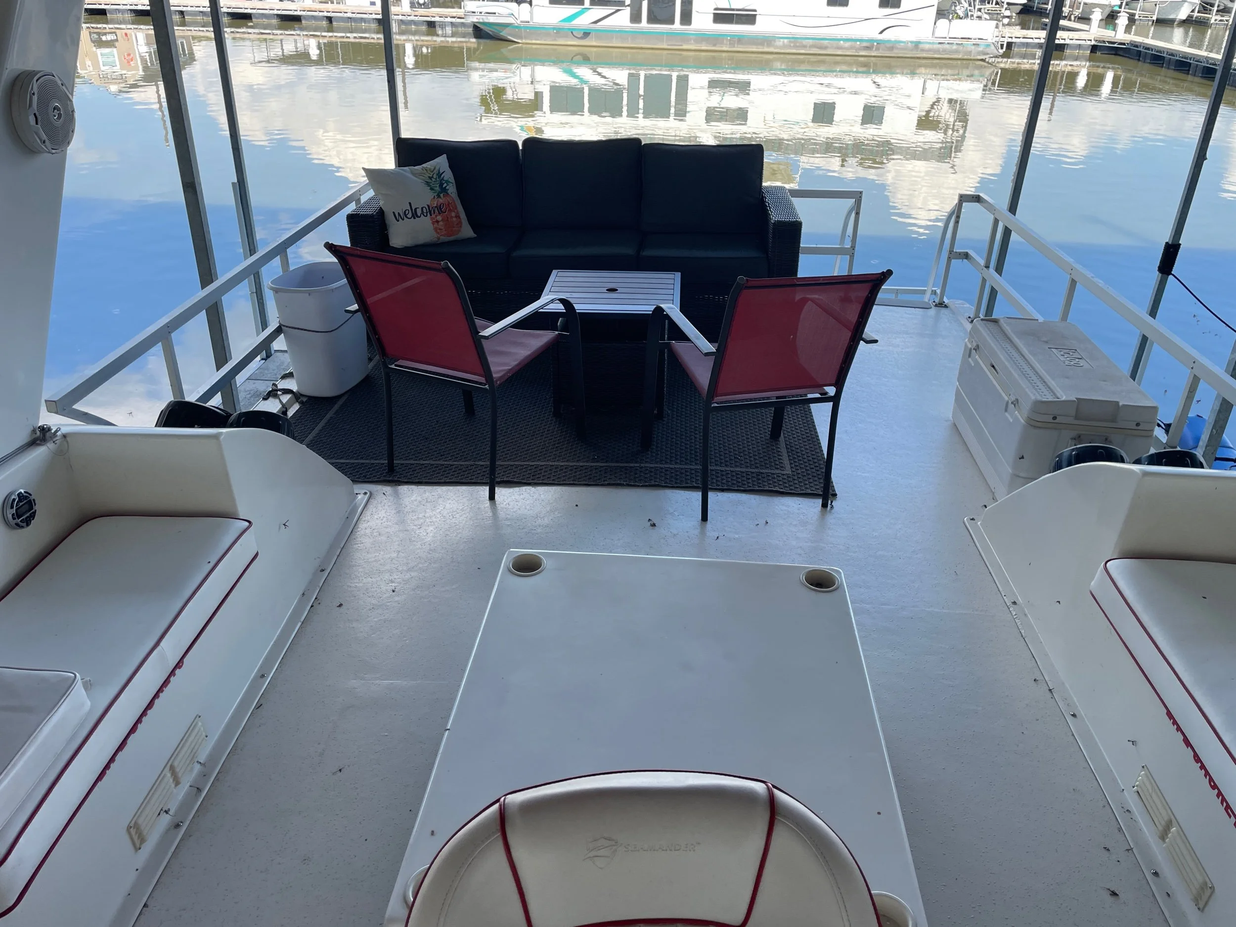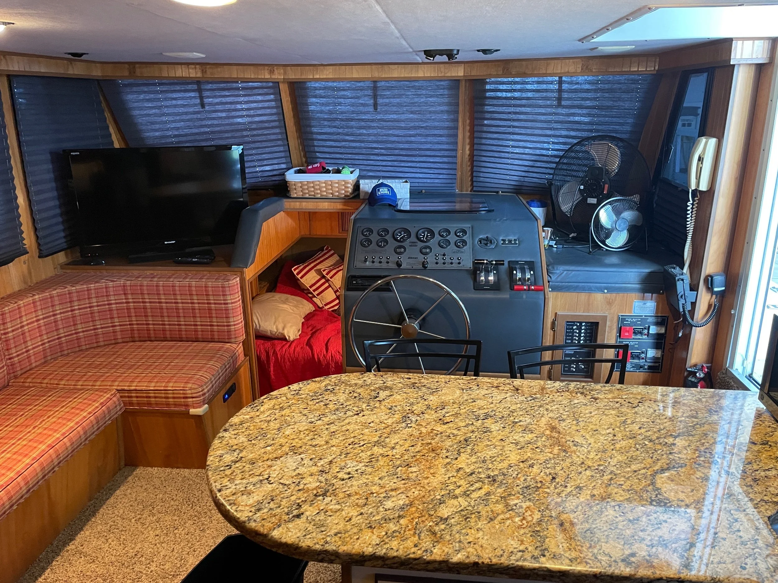 Aft couch with table and chairs