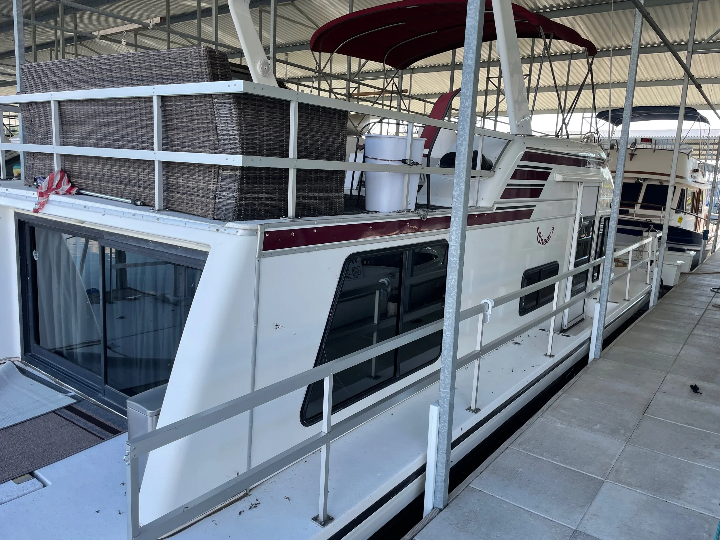 This 37 foot house boat is in great shape and is stored undercover in freshwater on the Illinois River.