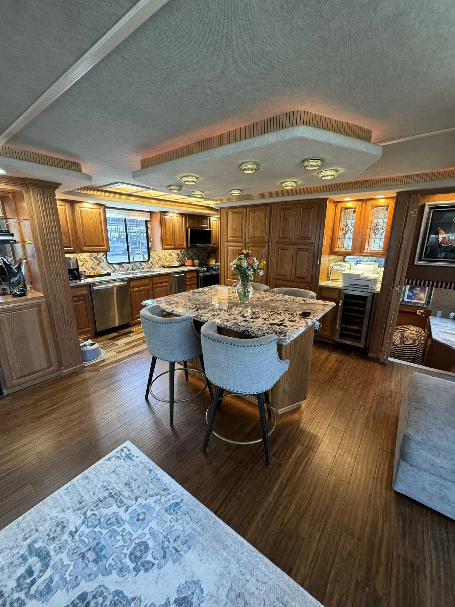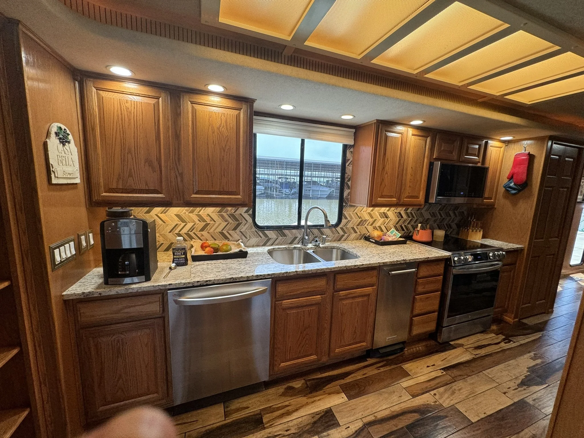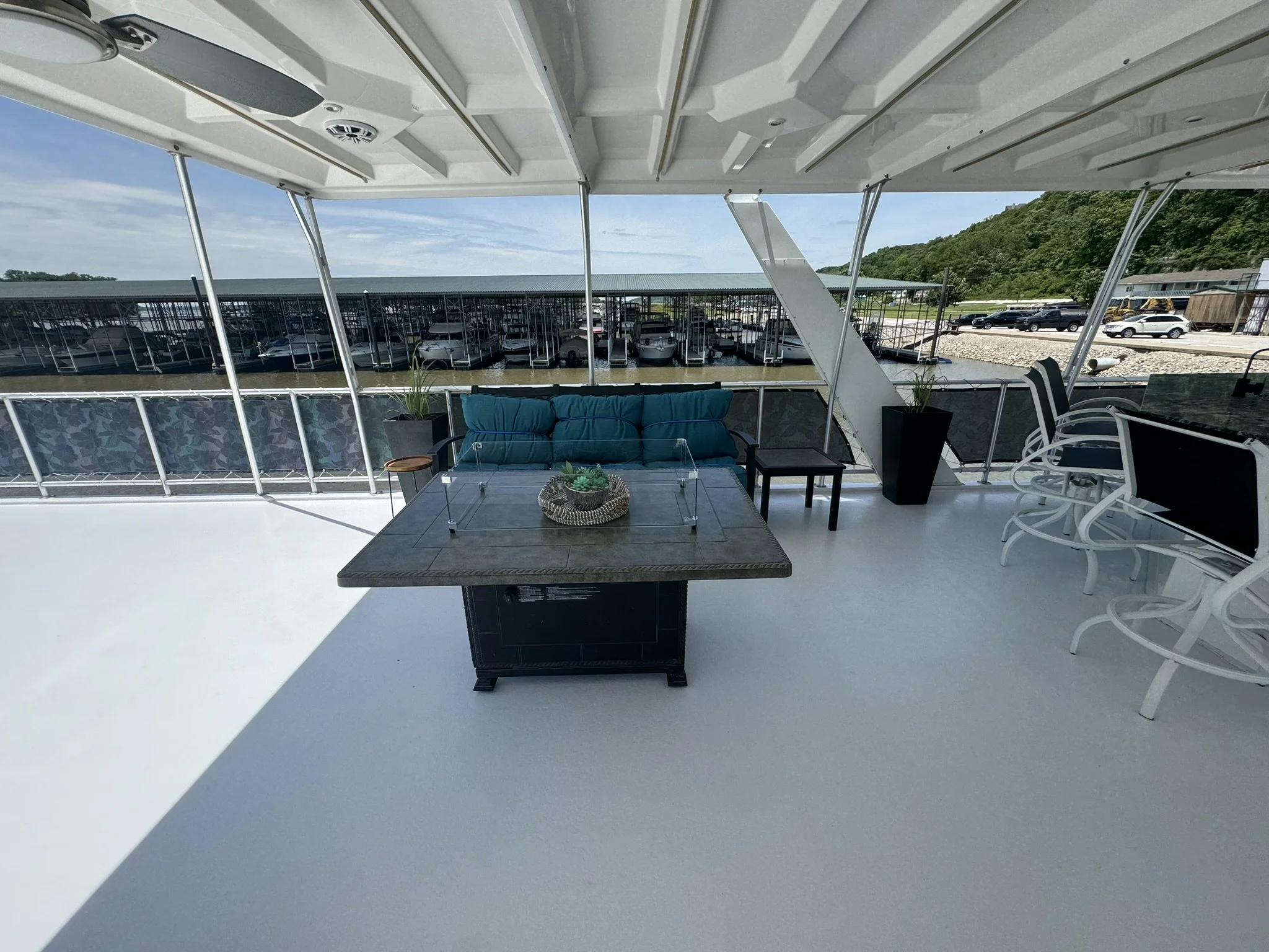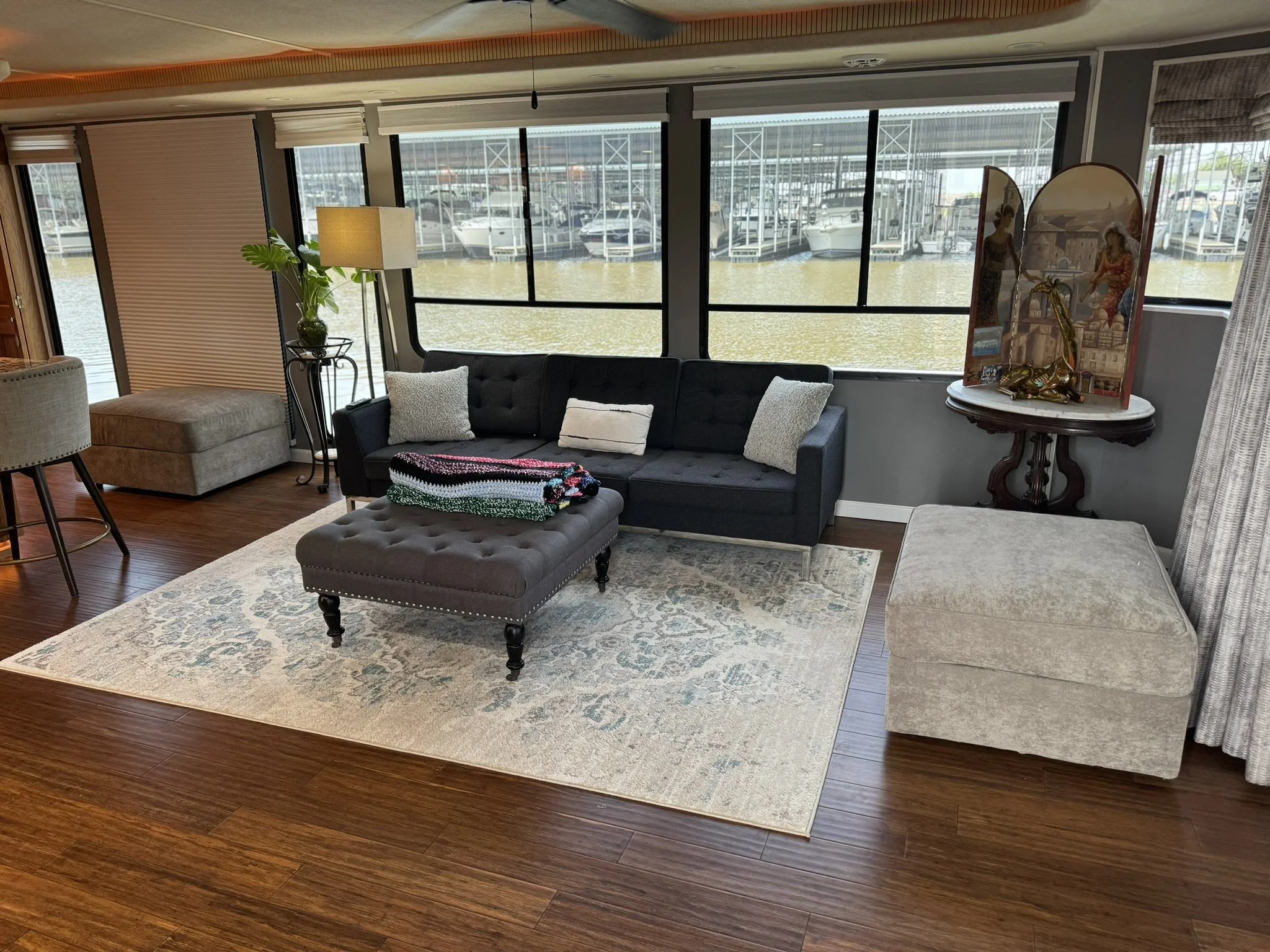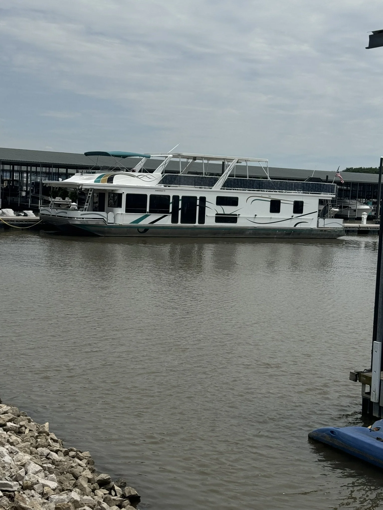 Houseboat has endless upgrades and has been meticulously maintained. At a whopping 75x18 this boat is 1,350 square feet including the front and back covered porches and not including the 1/2 covered top deck. This boat would be amazing as a floating condo and still has the capability to travel with you.