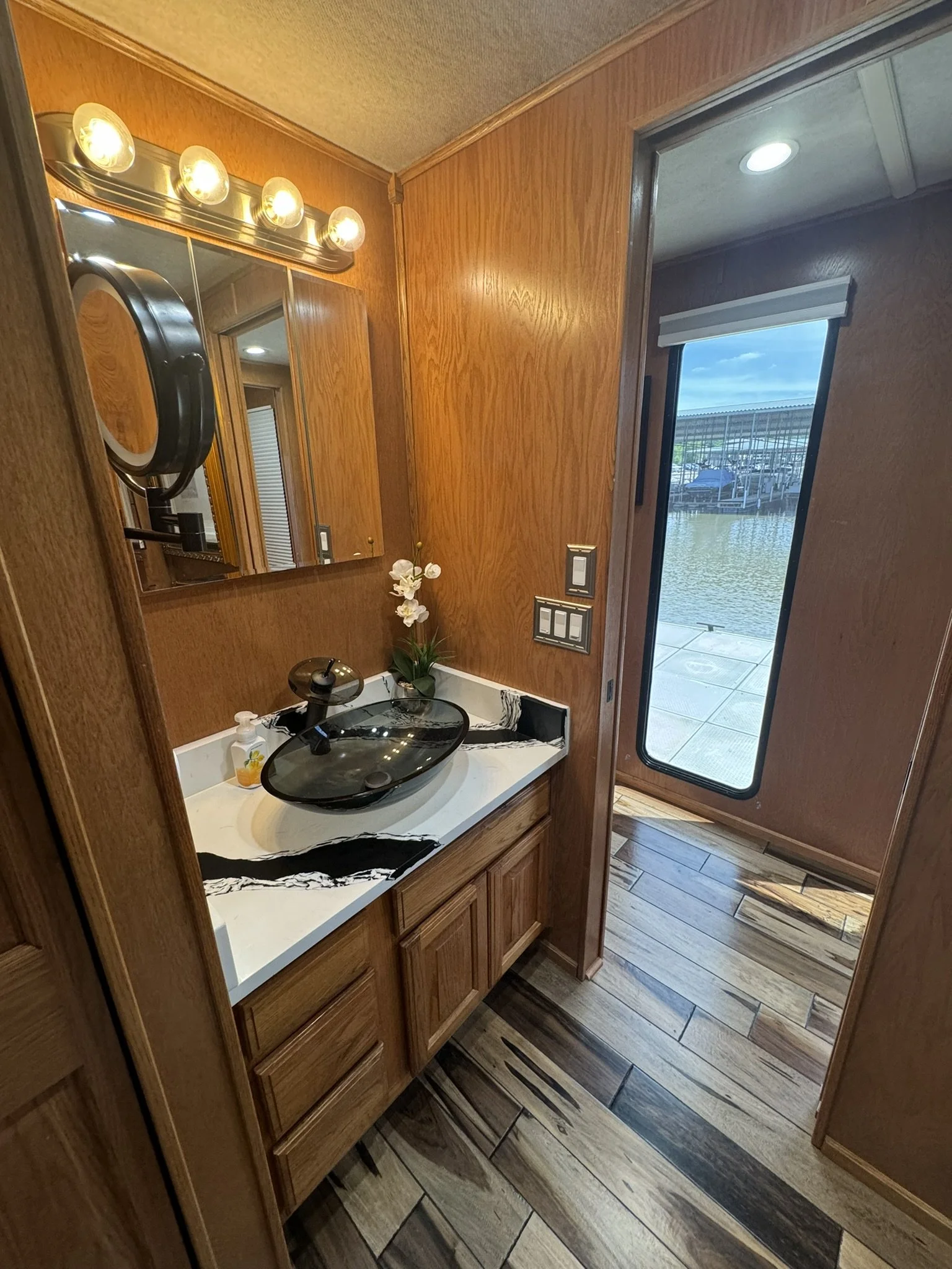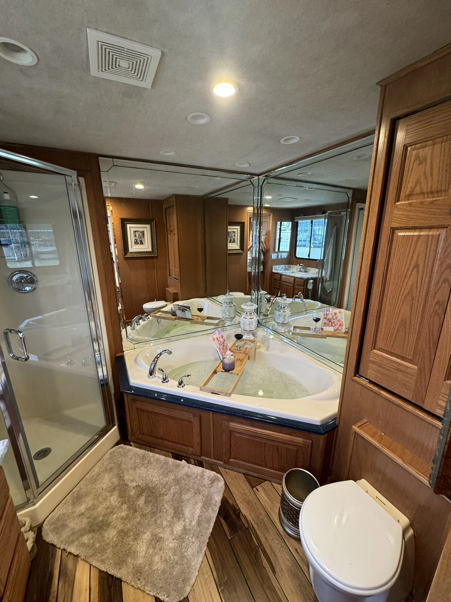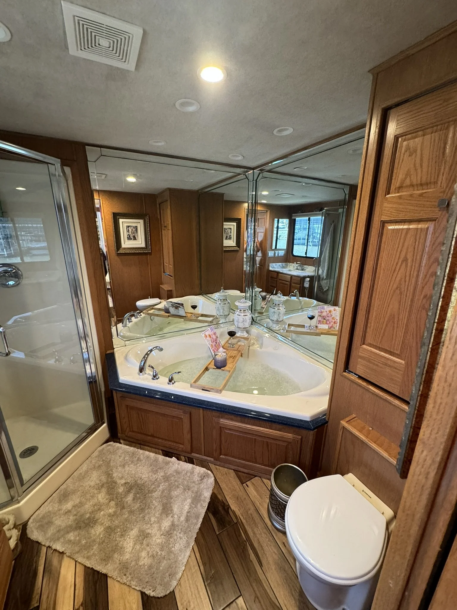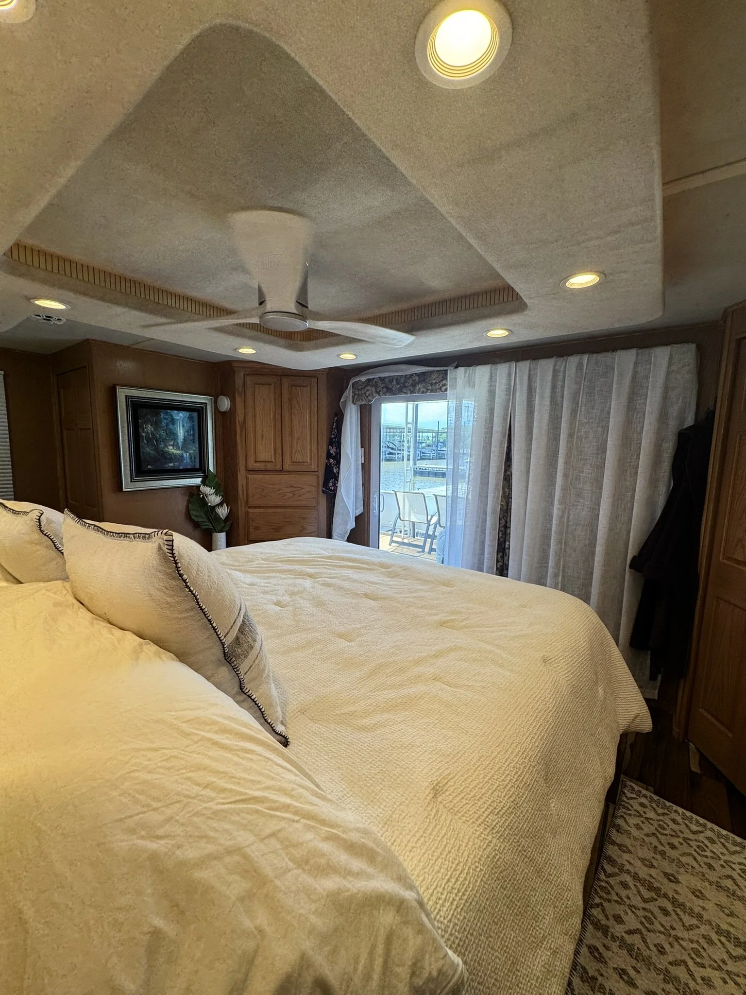 Houseboat has endless upgrades and has been meticulously maintained. At a whopping 75x18 this boat is 1,350 square feet including the front and back covered porches and not including the 1/2 covered top deck. This boat would be amazing as a floating condo and still has the capability to travel with you.
