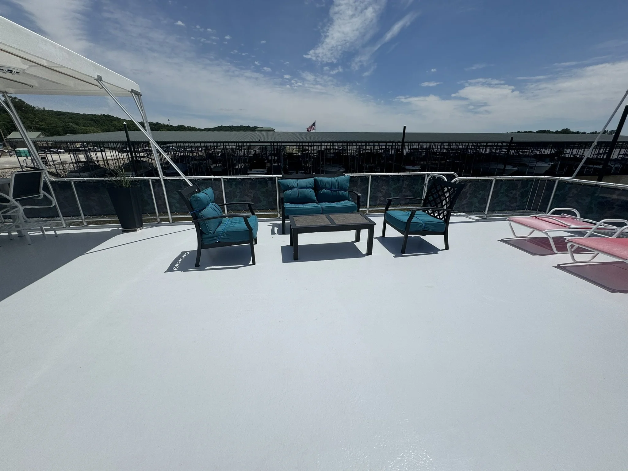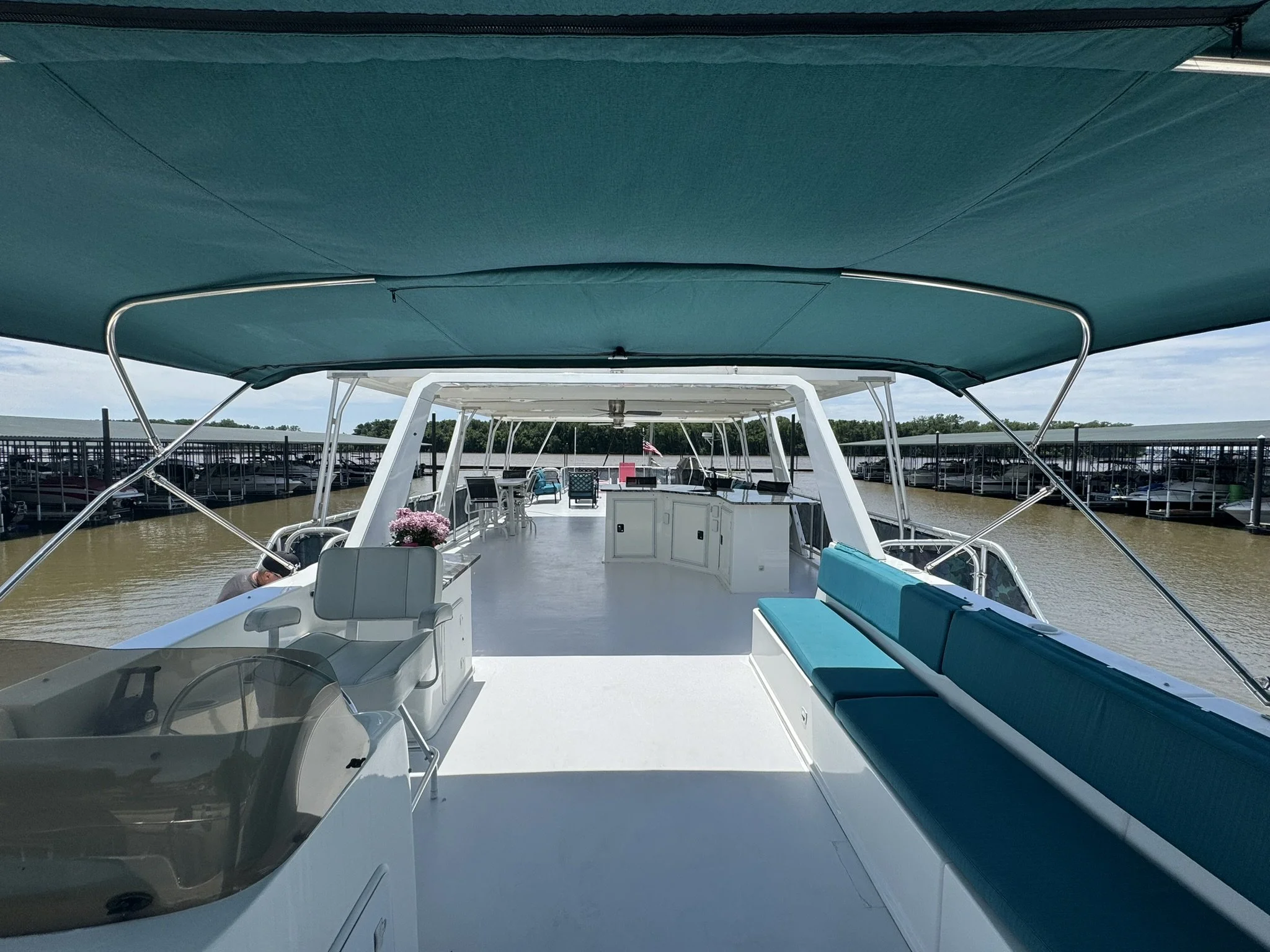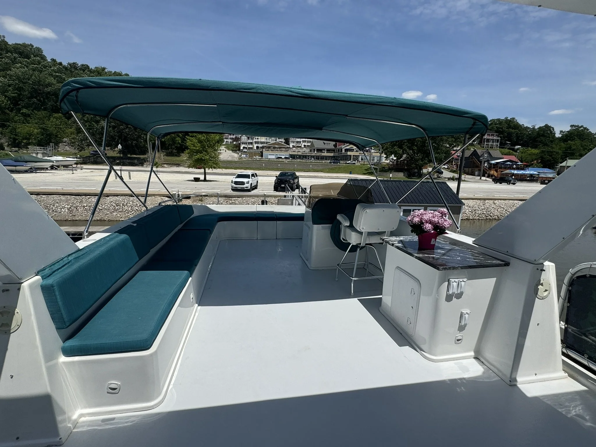 ENTIRE BOAT(port & starboard sides, top deck front area & bar) HAS BEEN SANDED, BUFFED & WAXED April 2024