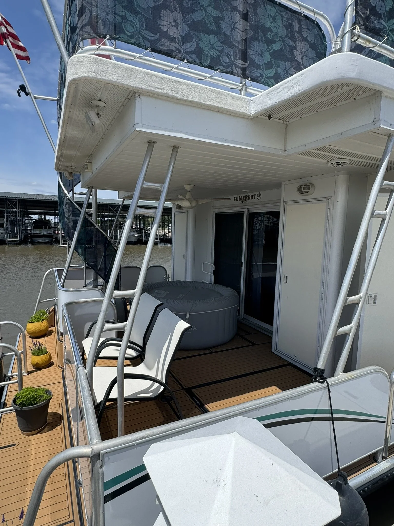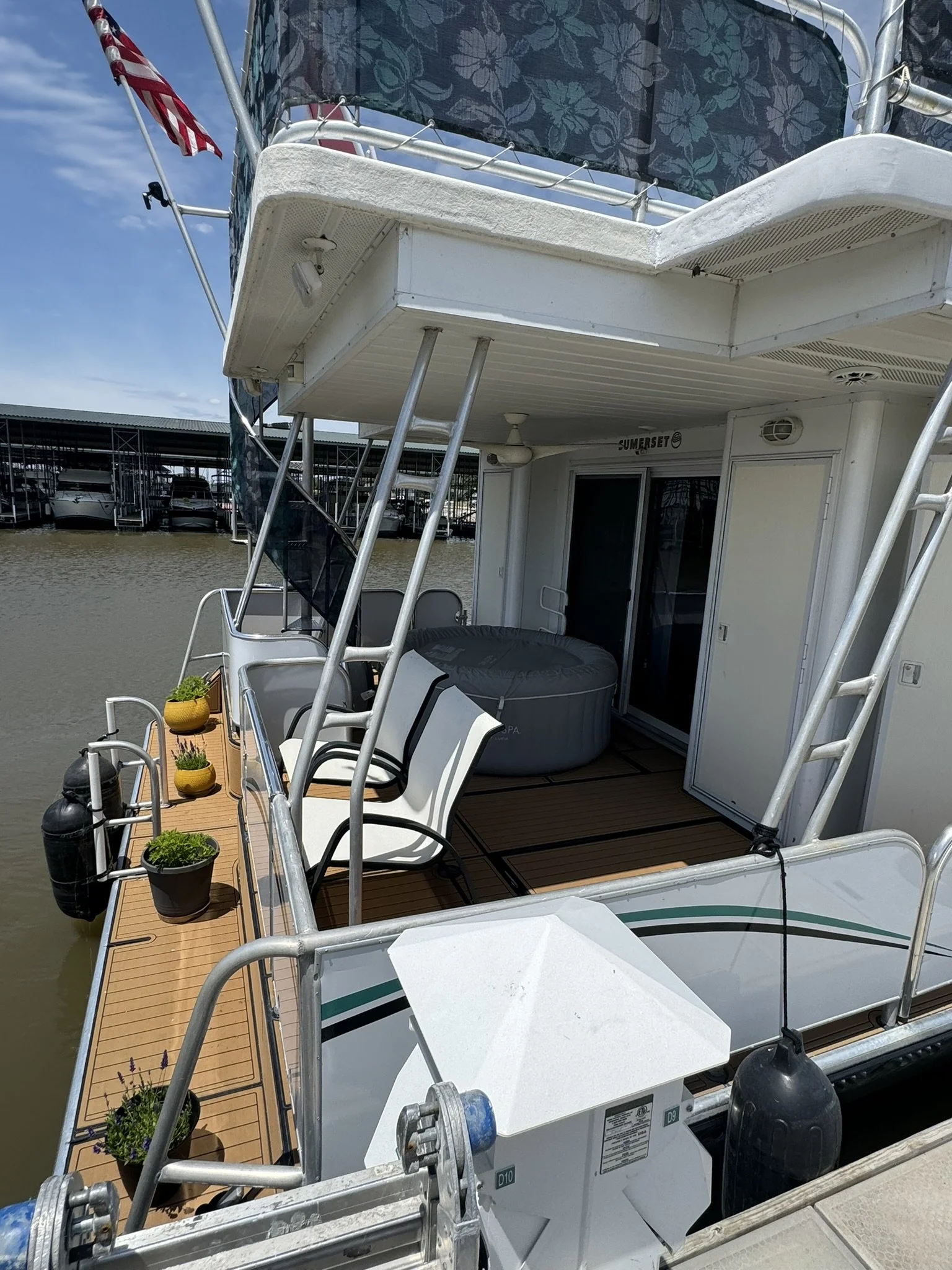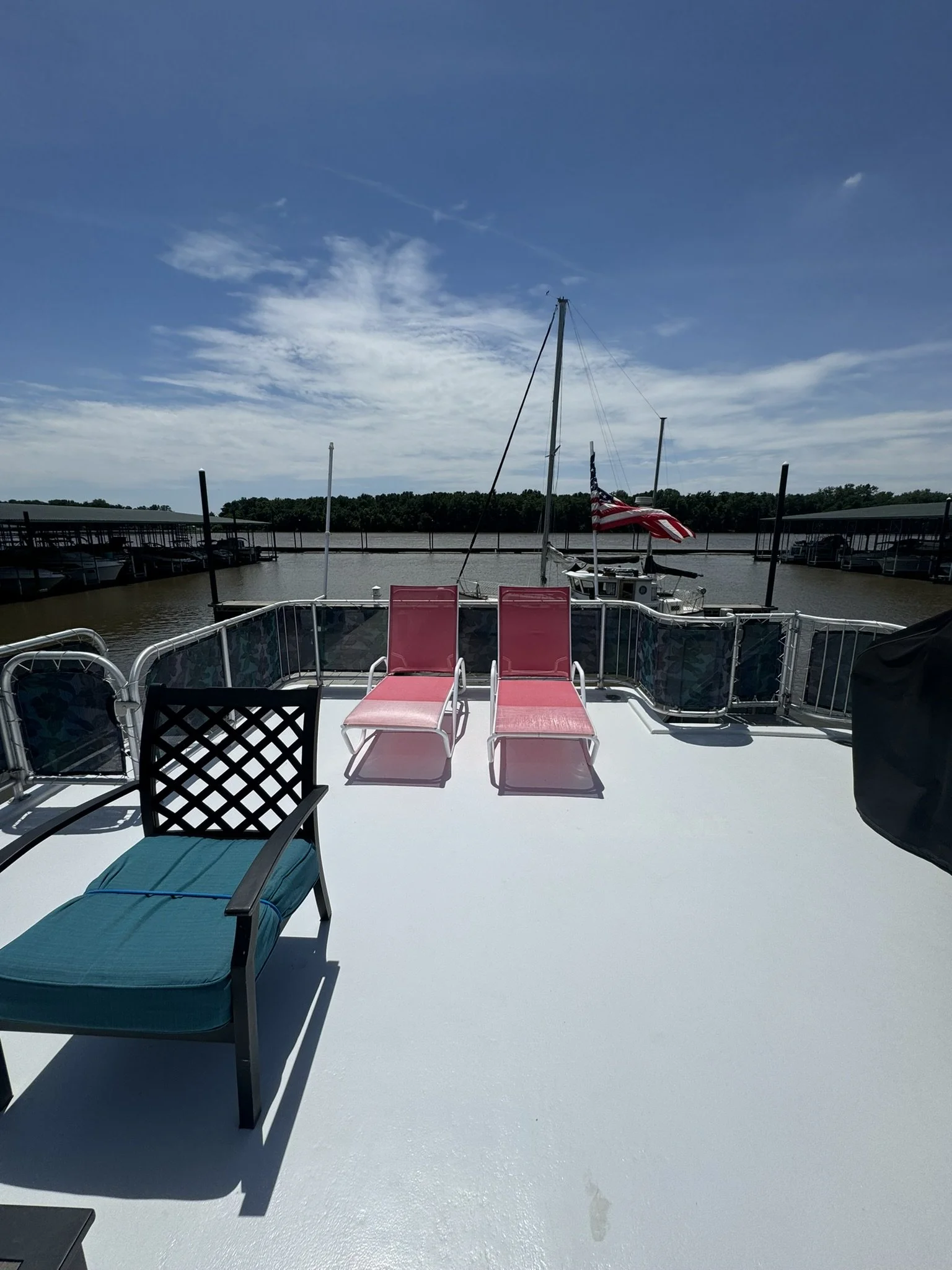 ENTIRE BOAT(port & starboard sides, top deck front area & bar) HAS BEEN SANDED, BUFFED & WAXED April 2024