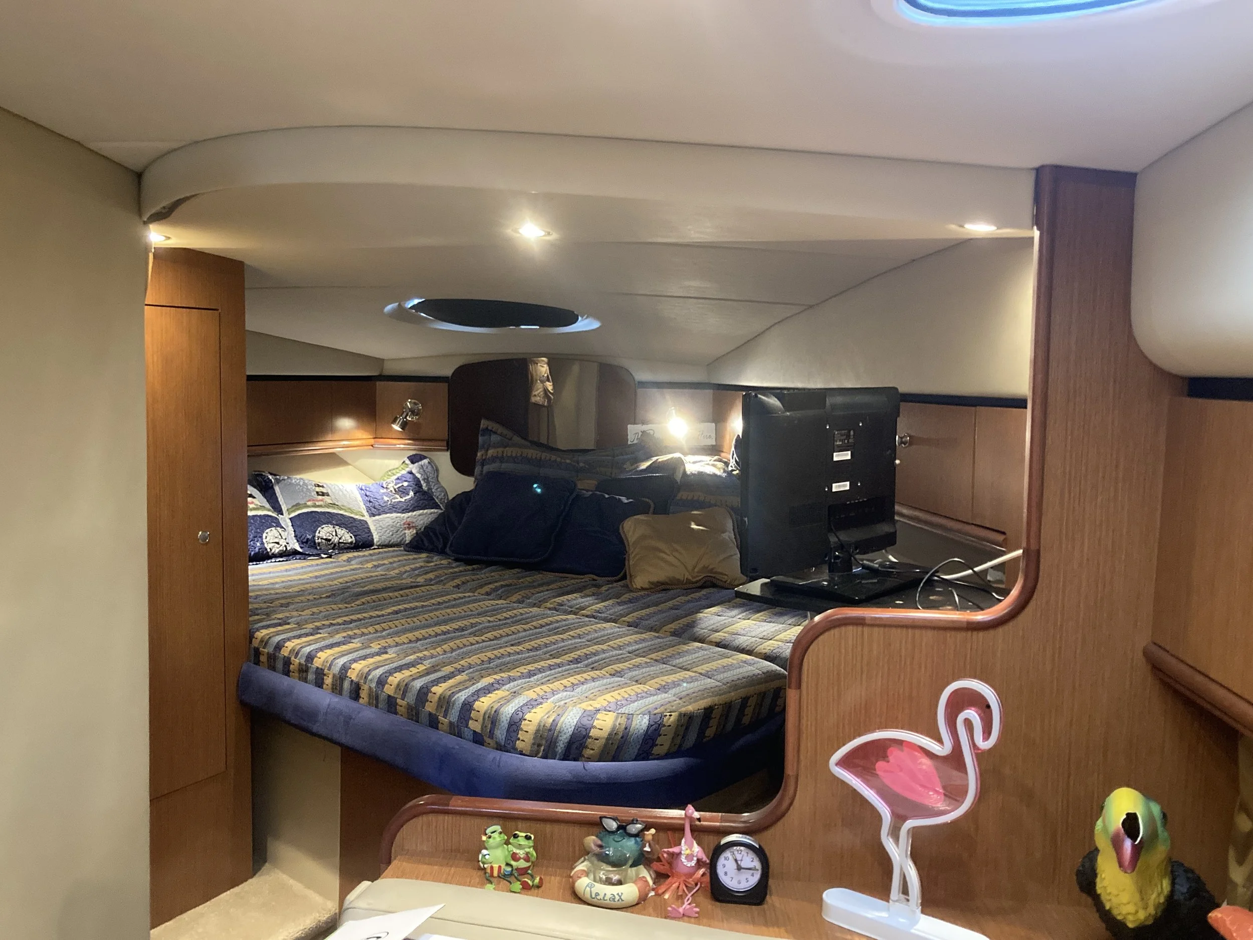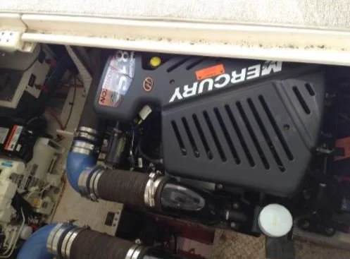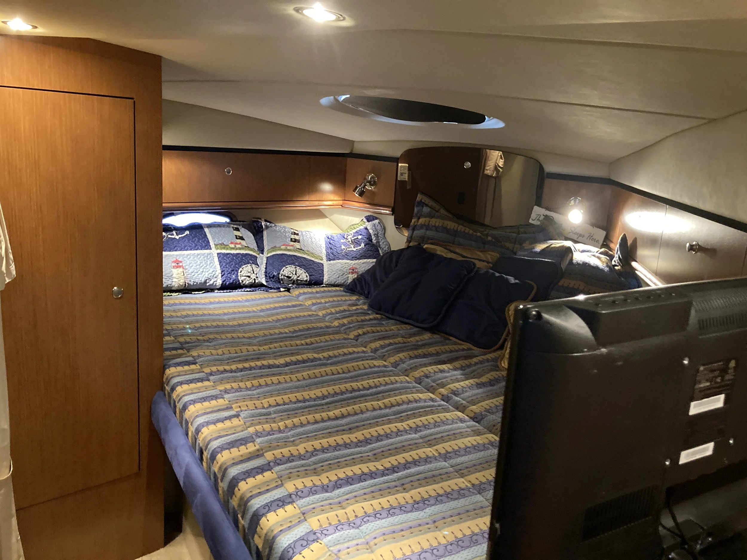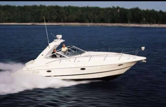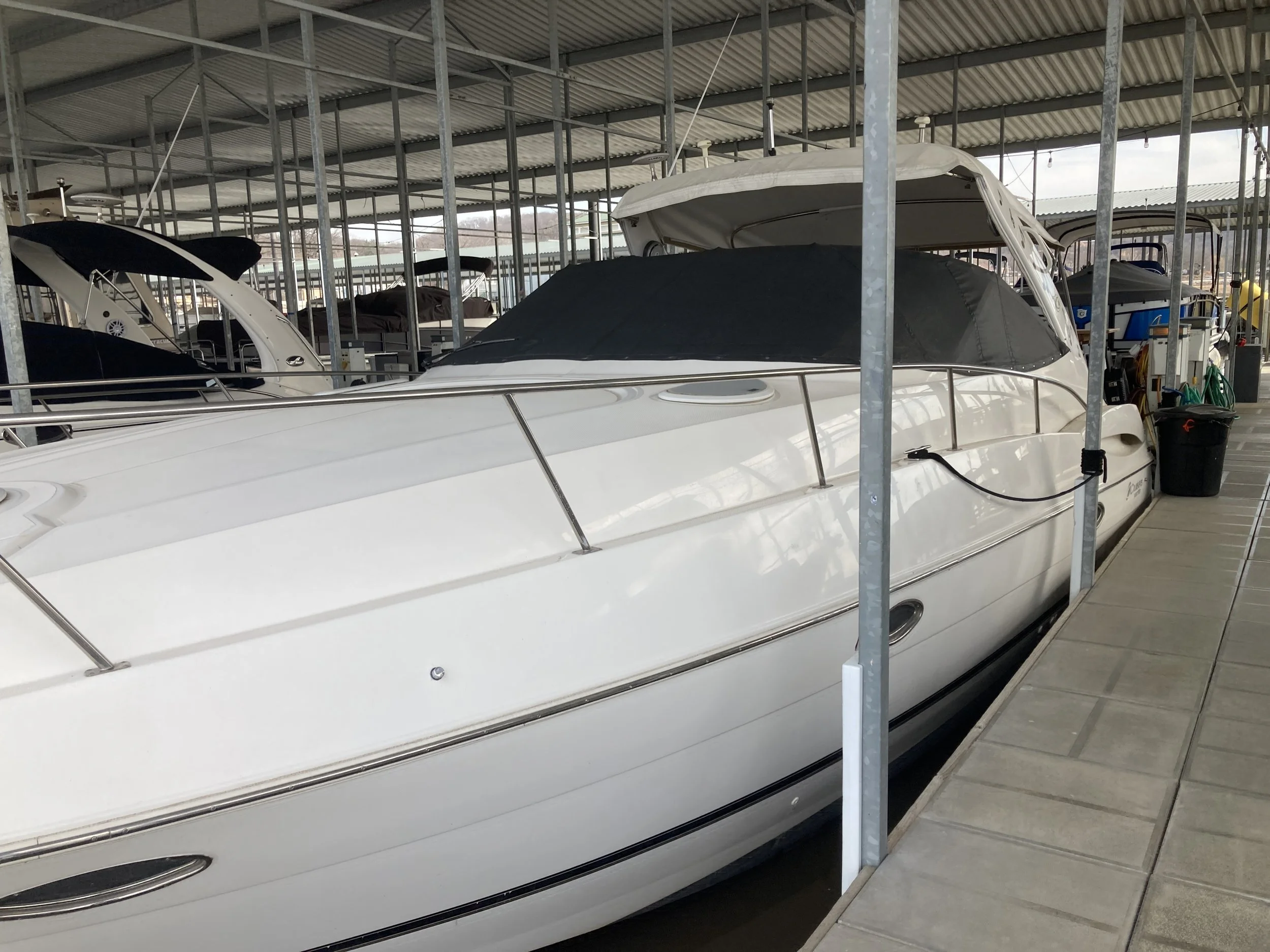 Beautiful well kept fresh water boat always kept in a covered slip! Twin Inboard 8.1 Mercruiser 8.1S Horizons with less than 350 Hours will push this spacious express cruiser well over 40MPH!