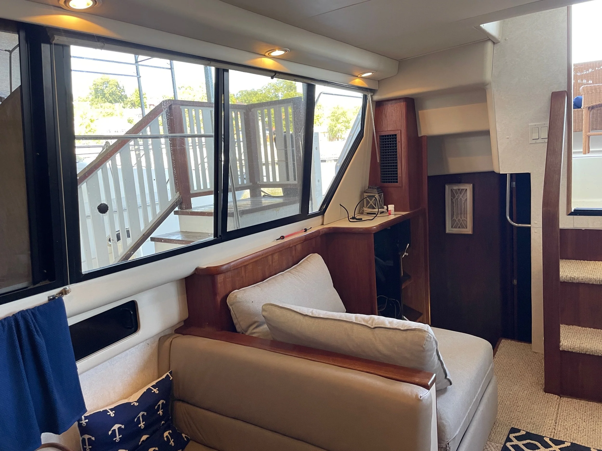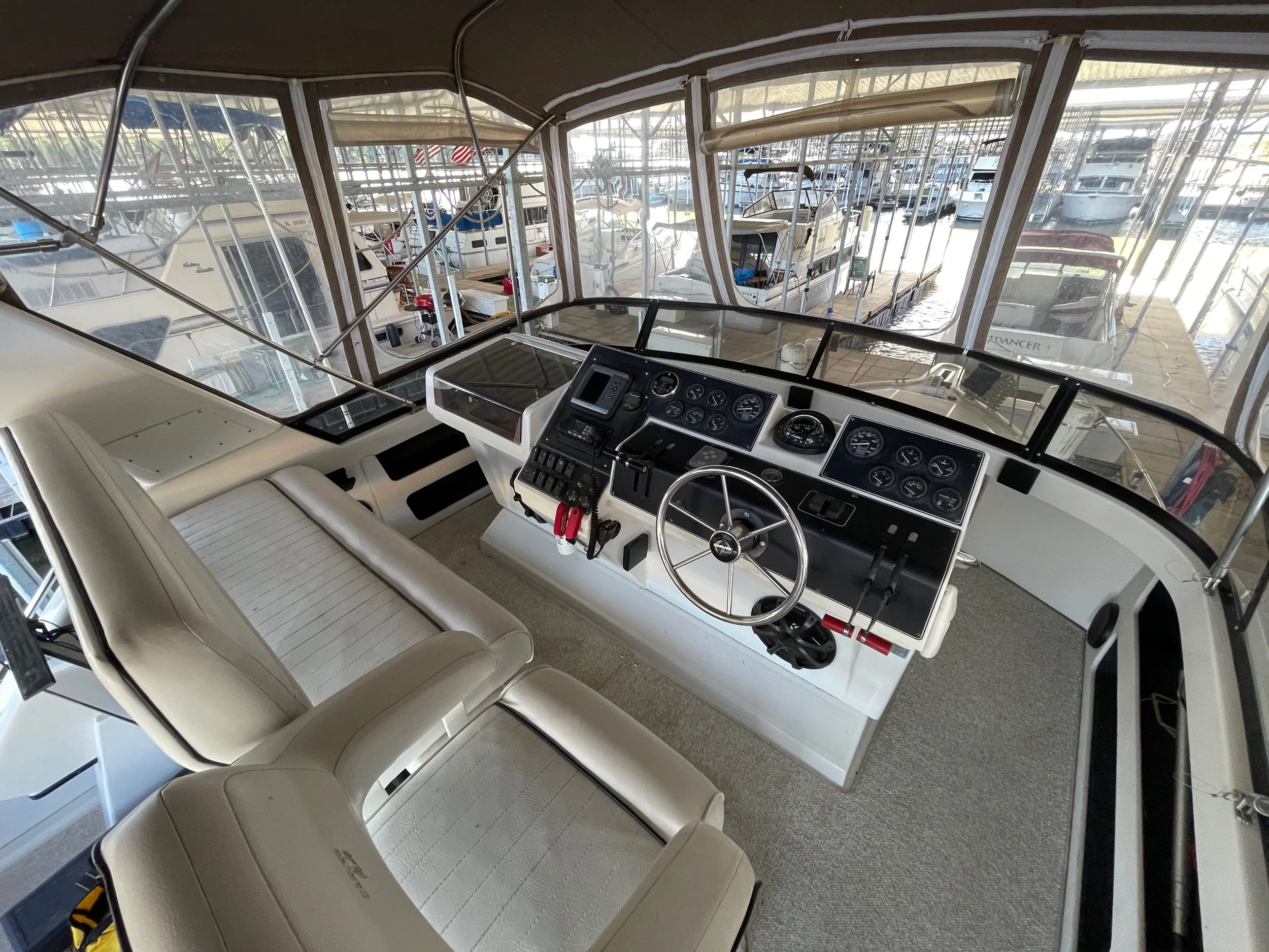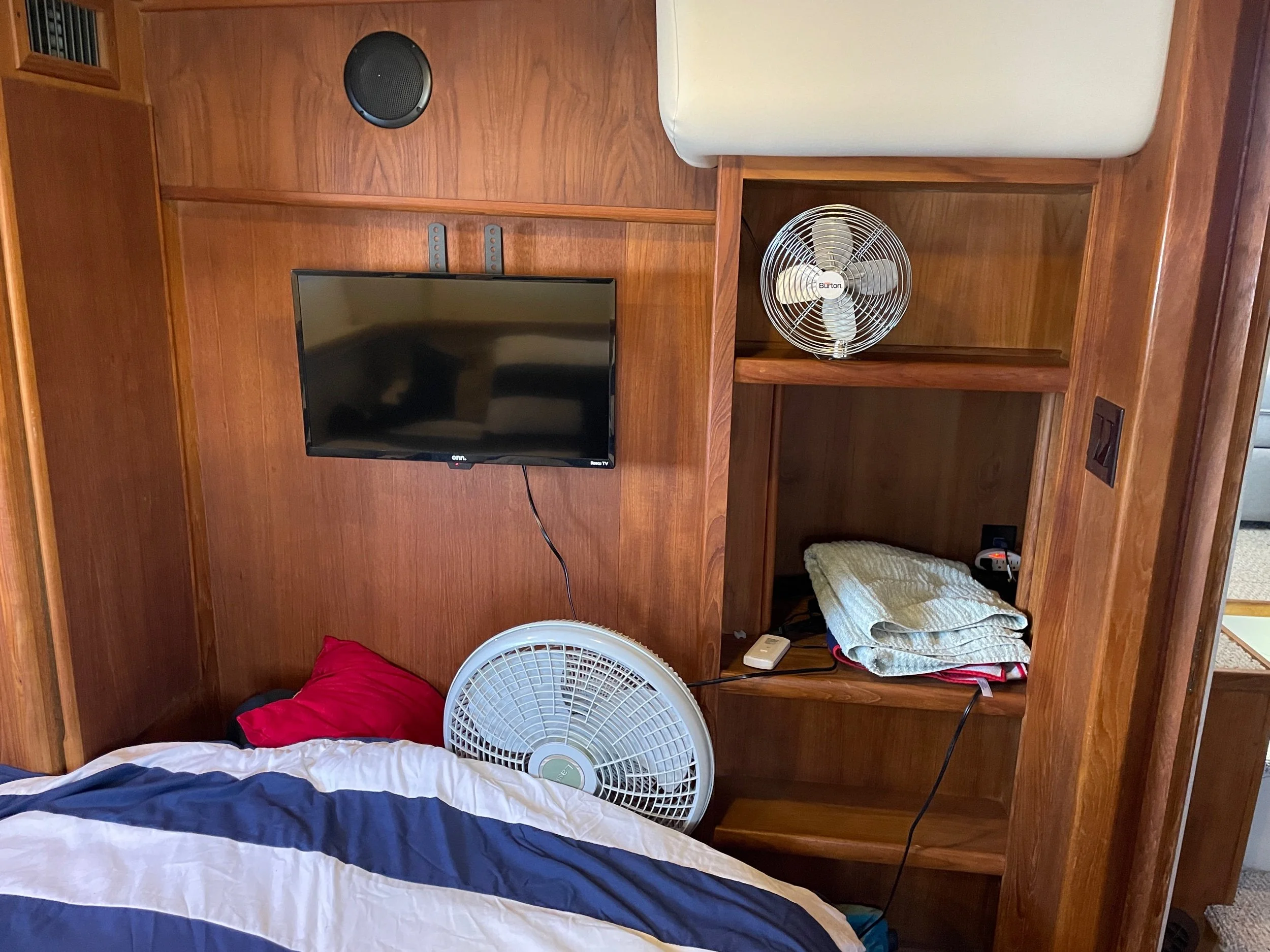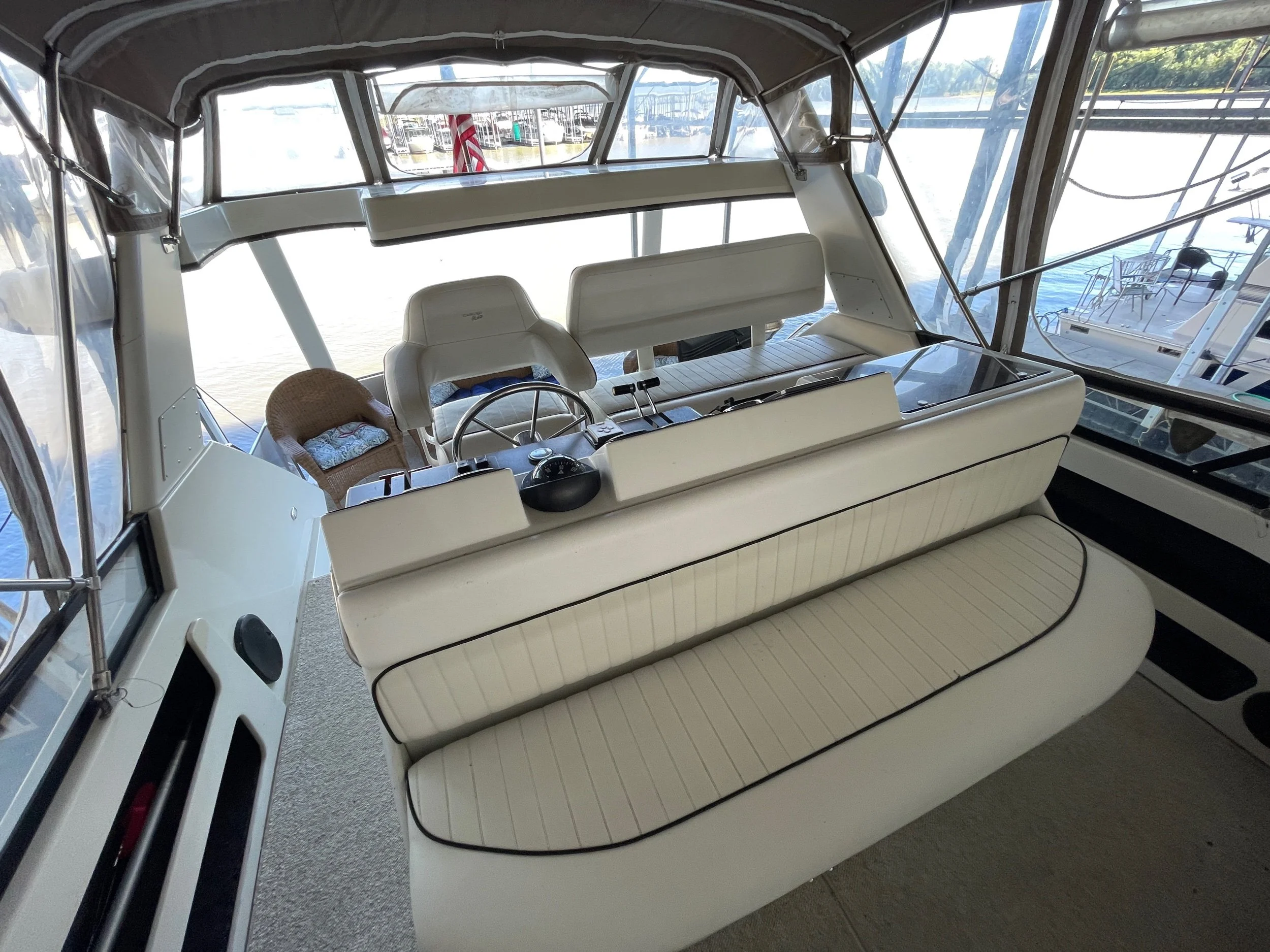 Dual Helm, Engine Sync, Ritchie Compass, Garmin GPS map 546, Hawk Eye Depth Finder, Upgraded Clarion Stereo with Remote and Dual helm subwoofers, West Marine VHF500 DSC, 2 Reverse Cycle Air Conditioners, Pressure Water, Water Heater, True Charge 40 Amp Multi-Stage Battery Charger, Fire Extinguishers, CO Alarms, Three Burner Princess Stove, GE Microwave Oven, Full Size Fridge, Teak Galley Sole, Seawolf Electric Windlass w/ foot pedal remote, Swim ladder and Bow Ladder, Upper Helm Eisenglass Enclosure.