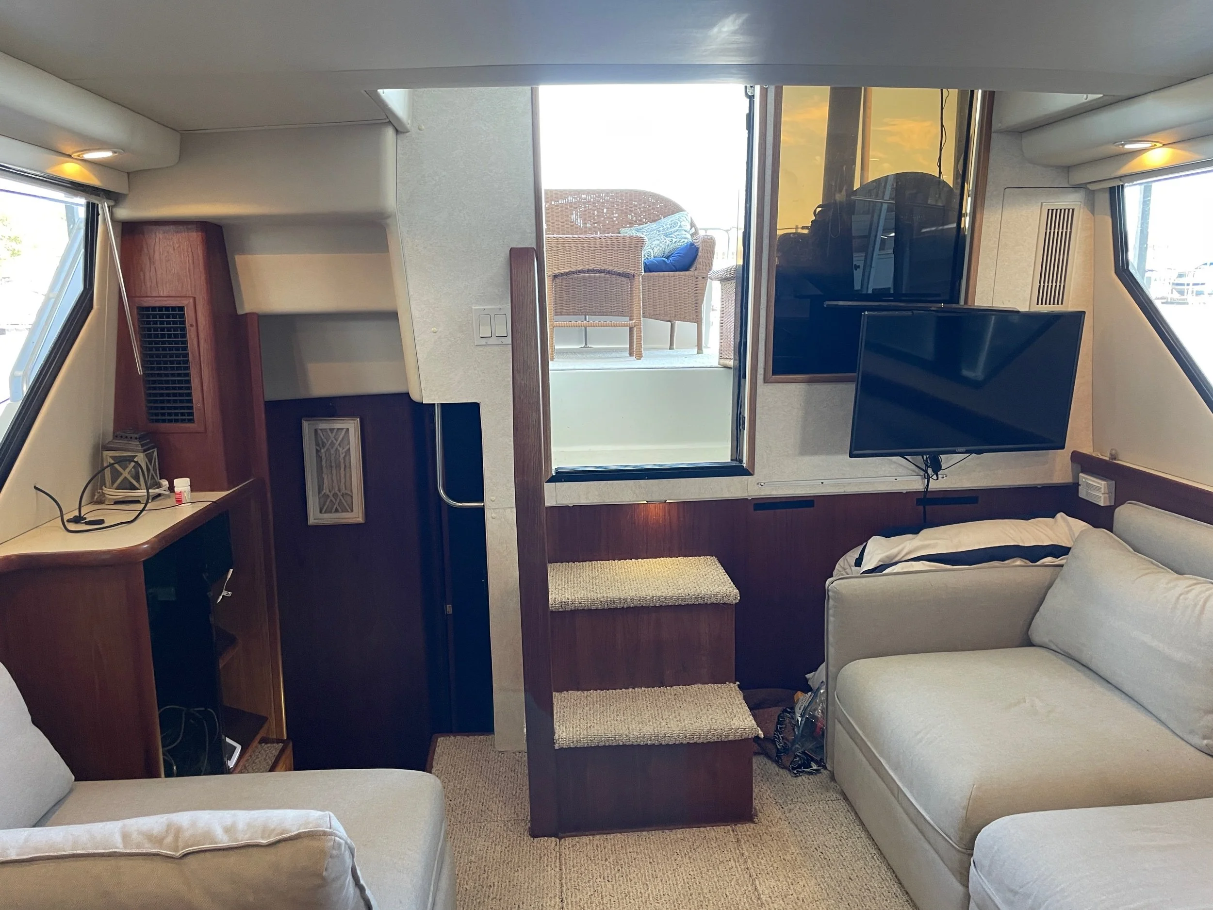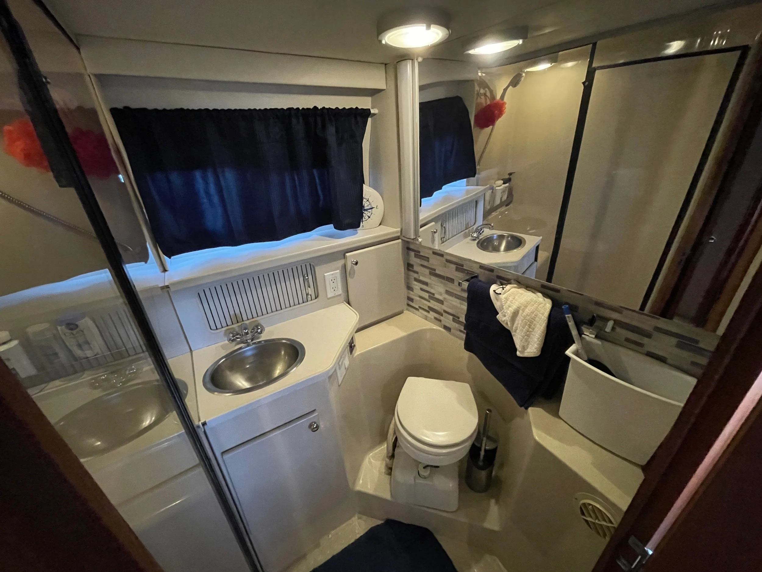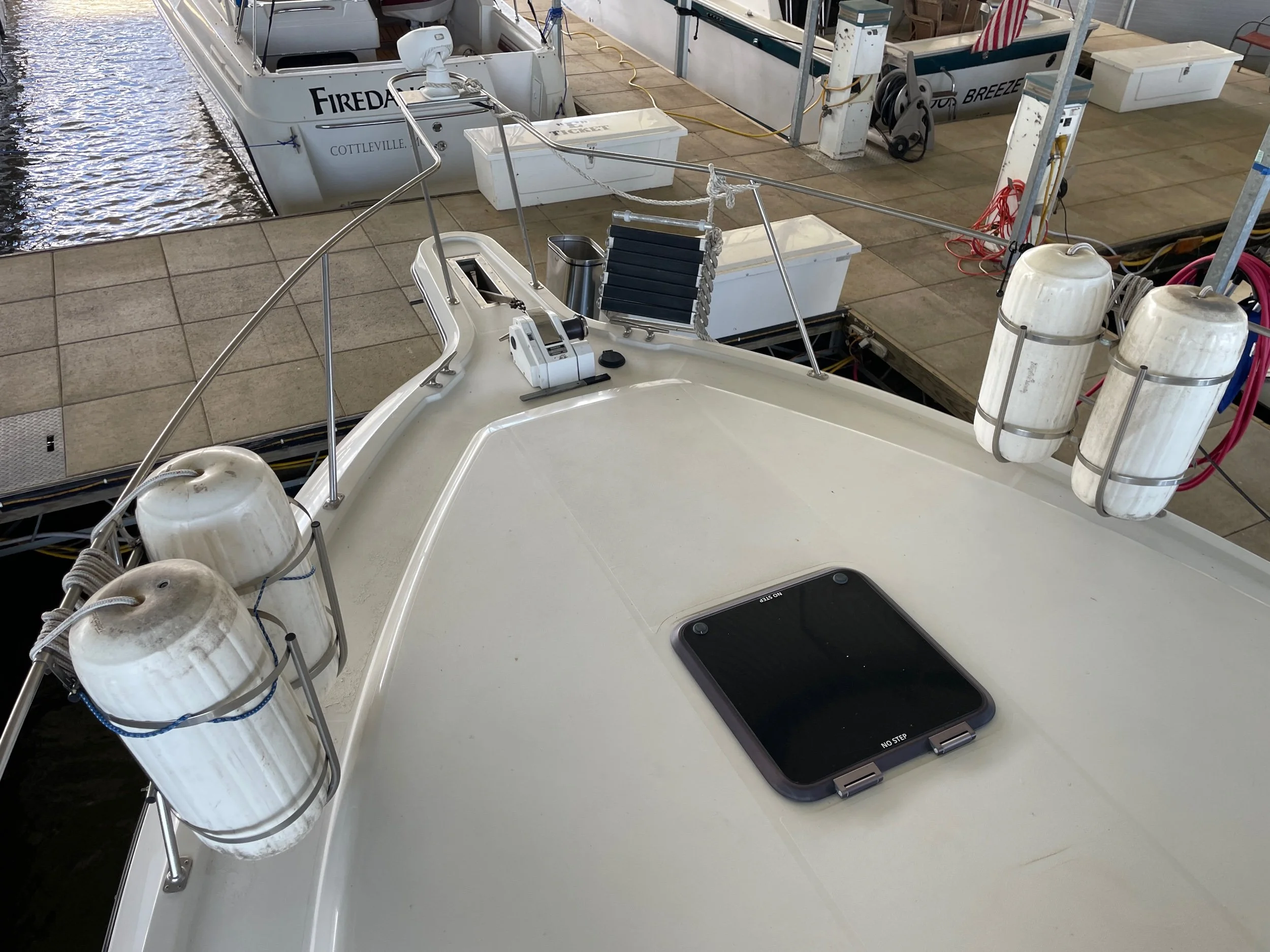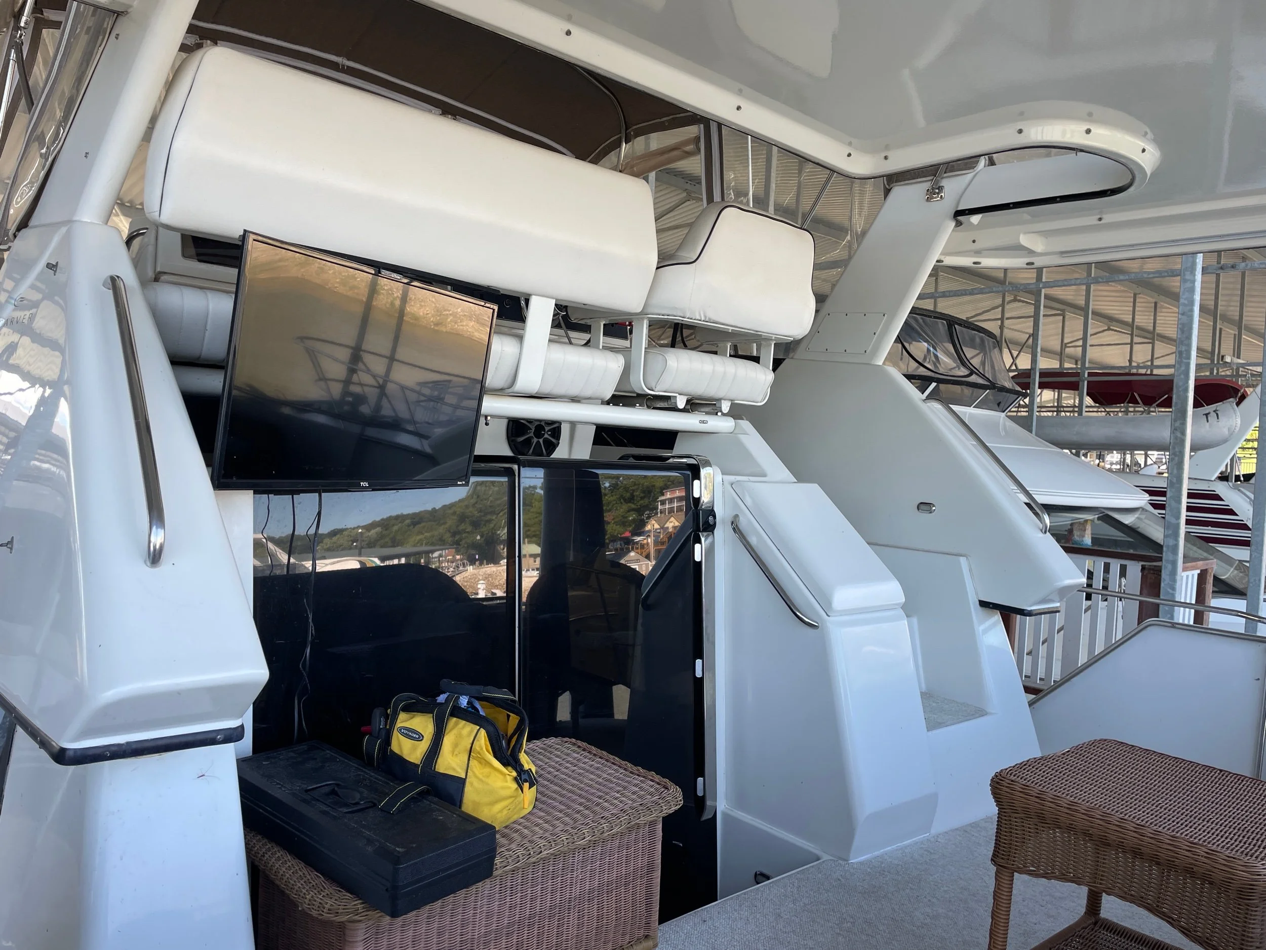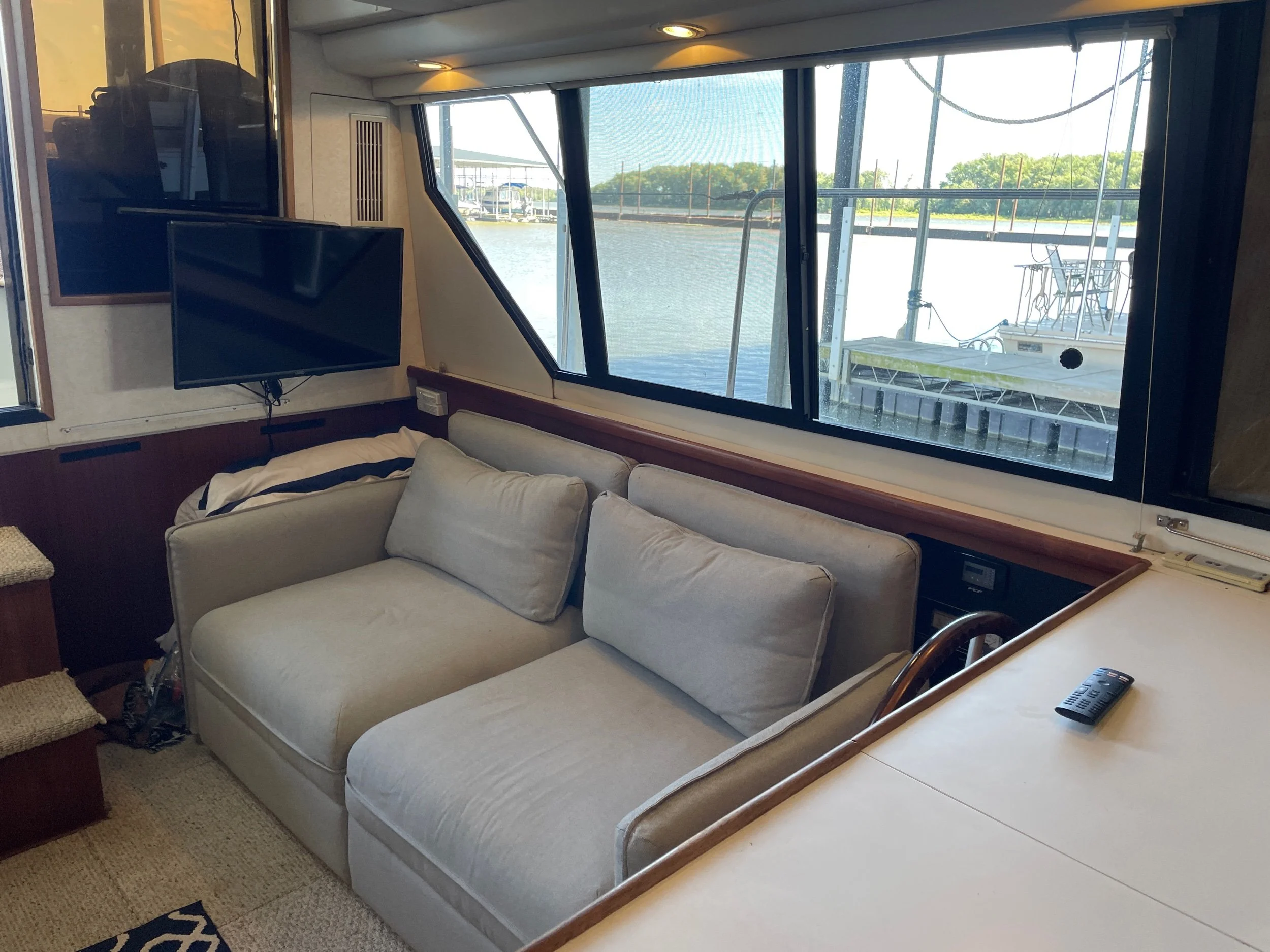 Dual Helm, Engine Sync, Ritchie Compass, Garmin GPS map 546, Hawk Eye Depth Finder, Upgraded Clarion Stereo with Remote and Dual helm subwoofers, West Marine VHF500 DSC, 2 Reverse Cycle Air Conditioners, Pressure Water, Water Heater, True Charge 40 Amp Multi-Stage Battery Charger, Fire Extinguishers, CO Alarms, Three Burner Princess Stove, GE Microwave Oven, Full Size Fridge, Teak Galley Sole, Seawolf Electric Windlass w/ foot pedal remote, Swim ladder and Bow Ladder, Upper Helm Eisenglass Enclosure.