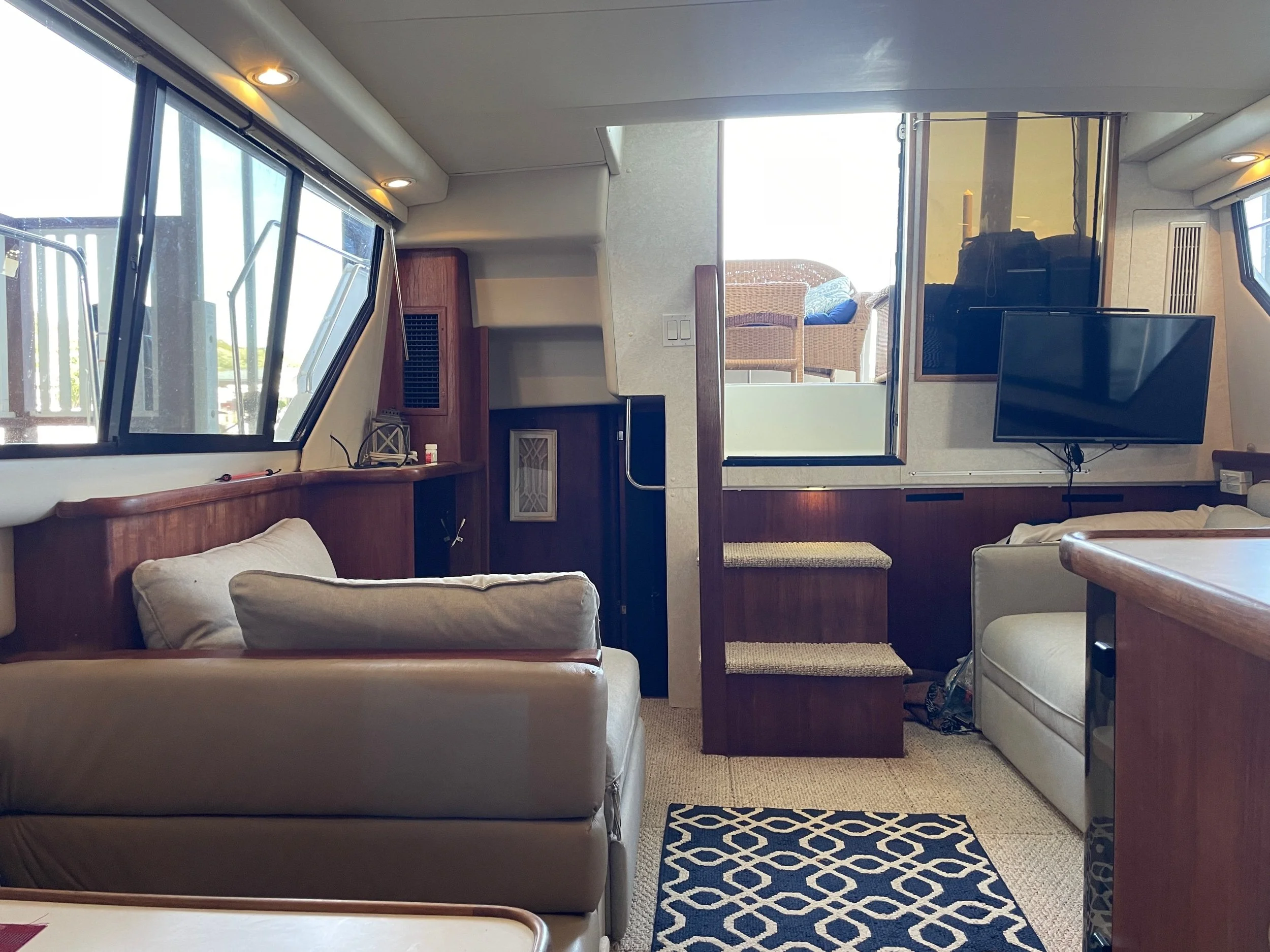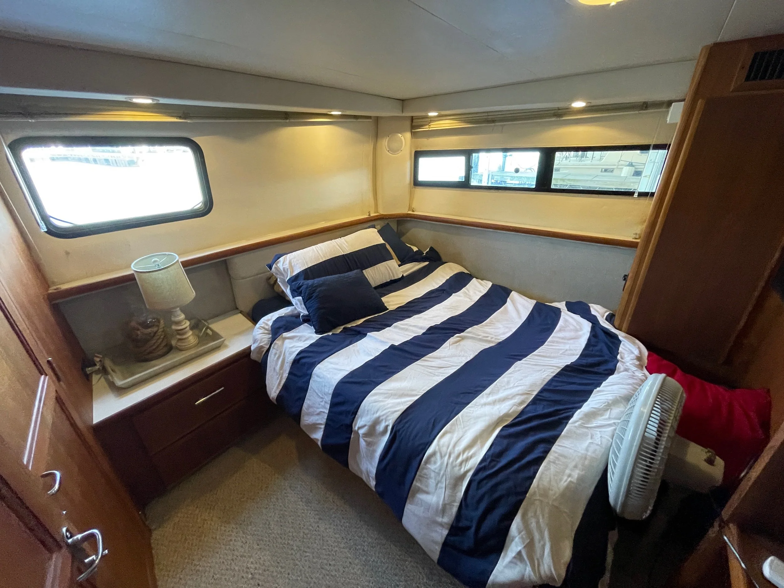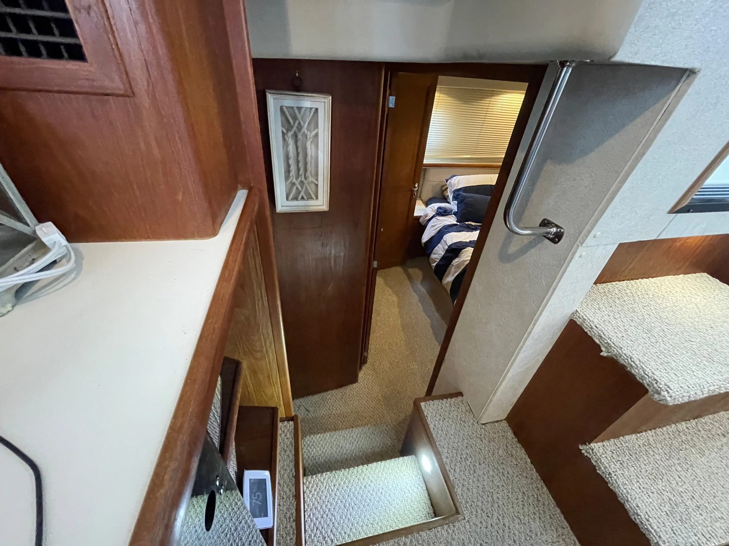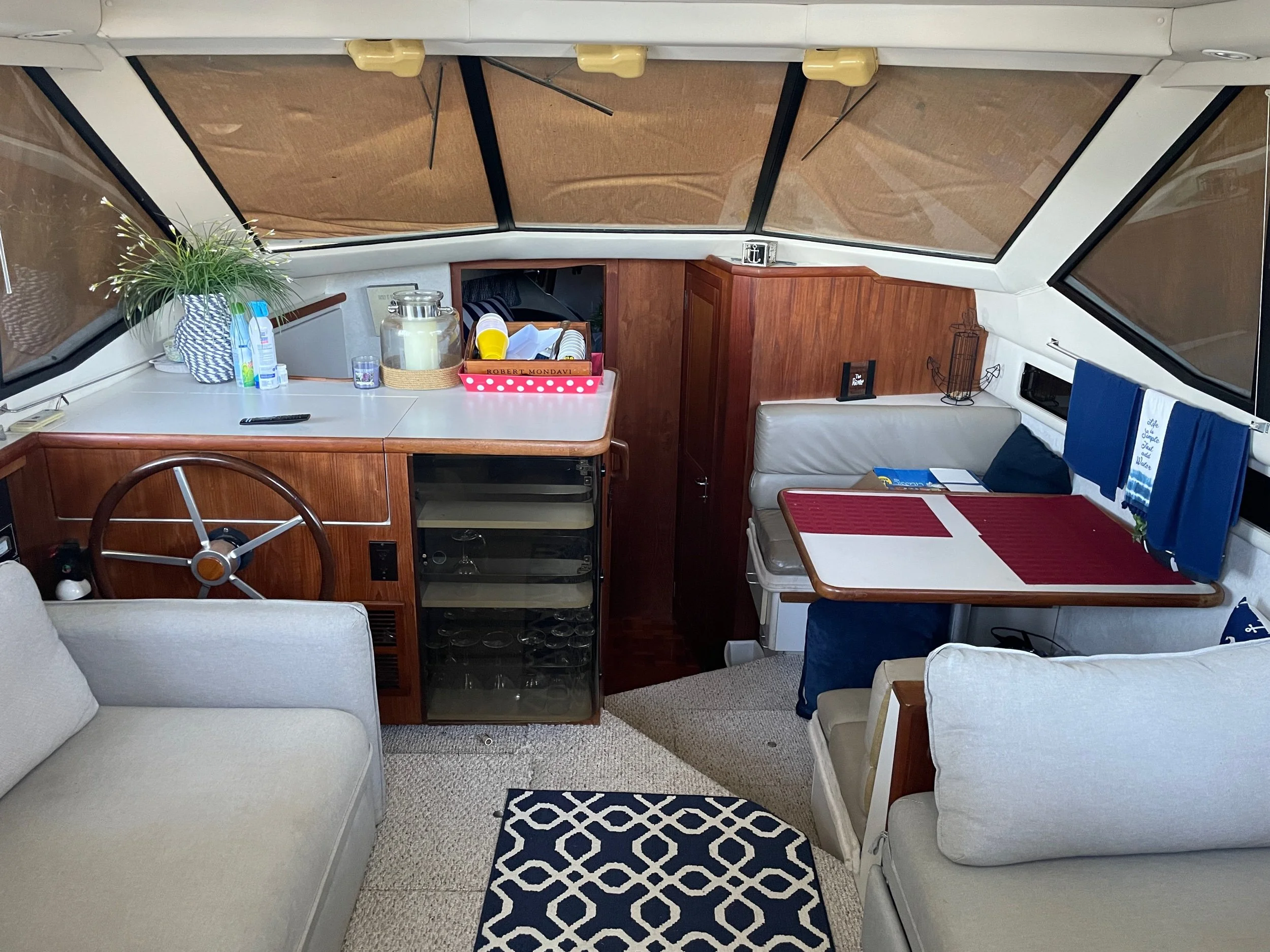 Dual Helm, Engine Sync, Ritchie Compass, Garmin GPS map 546, Hawk Eye Depth Finder, Upgraded Clarion Stereo with Remote and Dual helm subwoofers, West Marine VHF500 DSC, 2 Reverse Cycle Air Conditioners, Pressure Water, Water Heater, True Charge 40 Amp Multi-Stage Battery Charger, Fire Extinguishers, CO Alarms, Three Burner Princess Stove, GE Microwave Oven, Full Size Fridge, Teak Galley Sole, Seawolf Electric Windlass w/ foot pedal remote, Swim ladder and Bow Ladder, Upper Helm Eisenglass Enclosure.