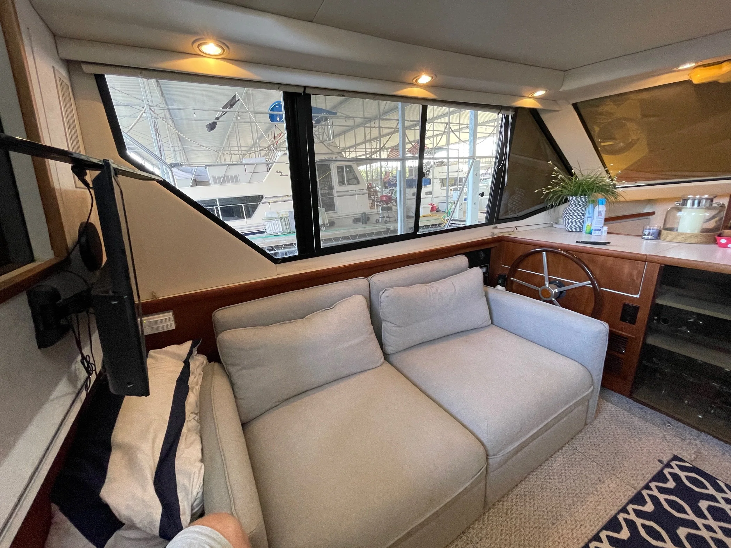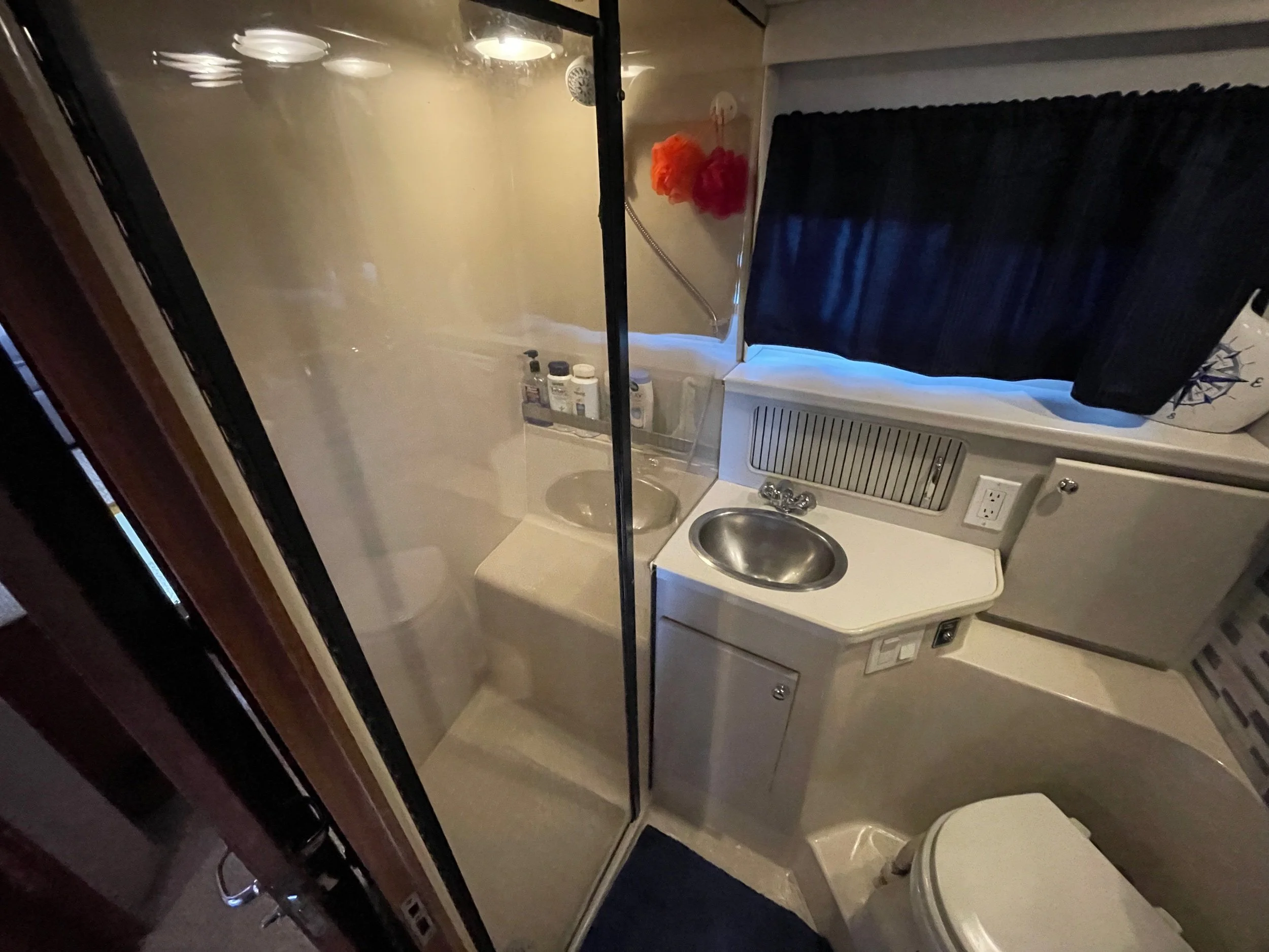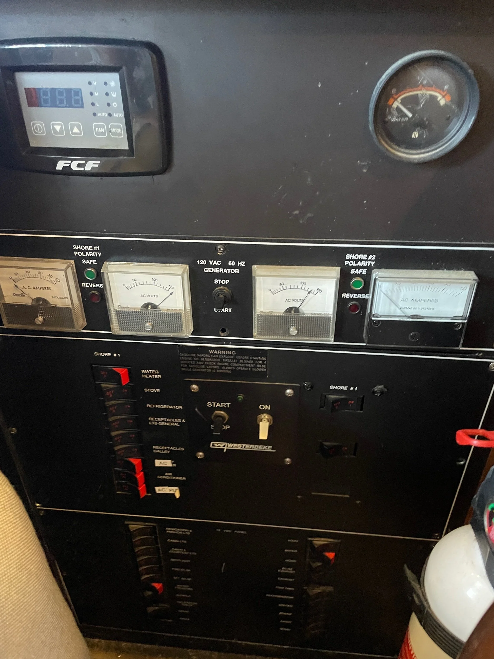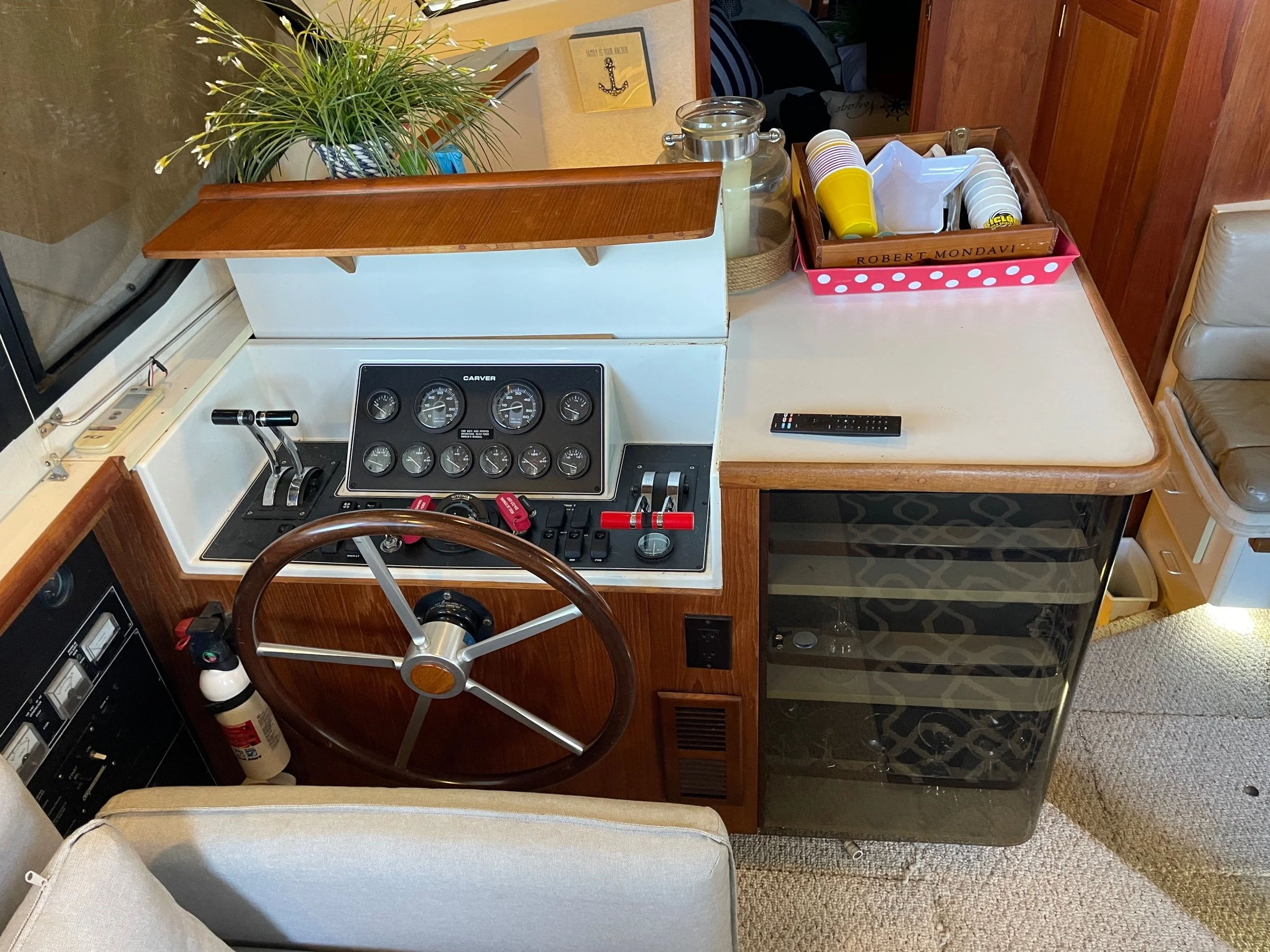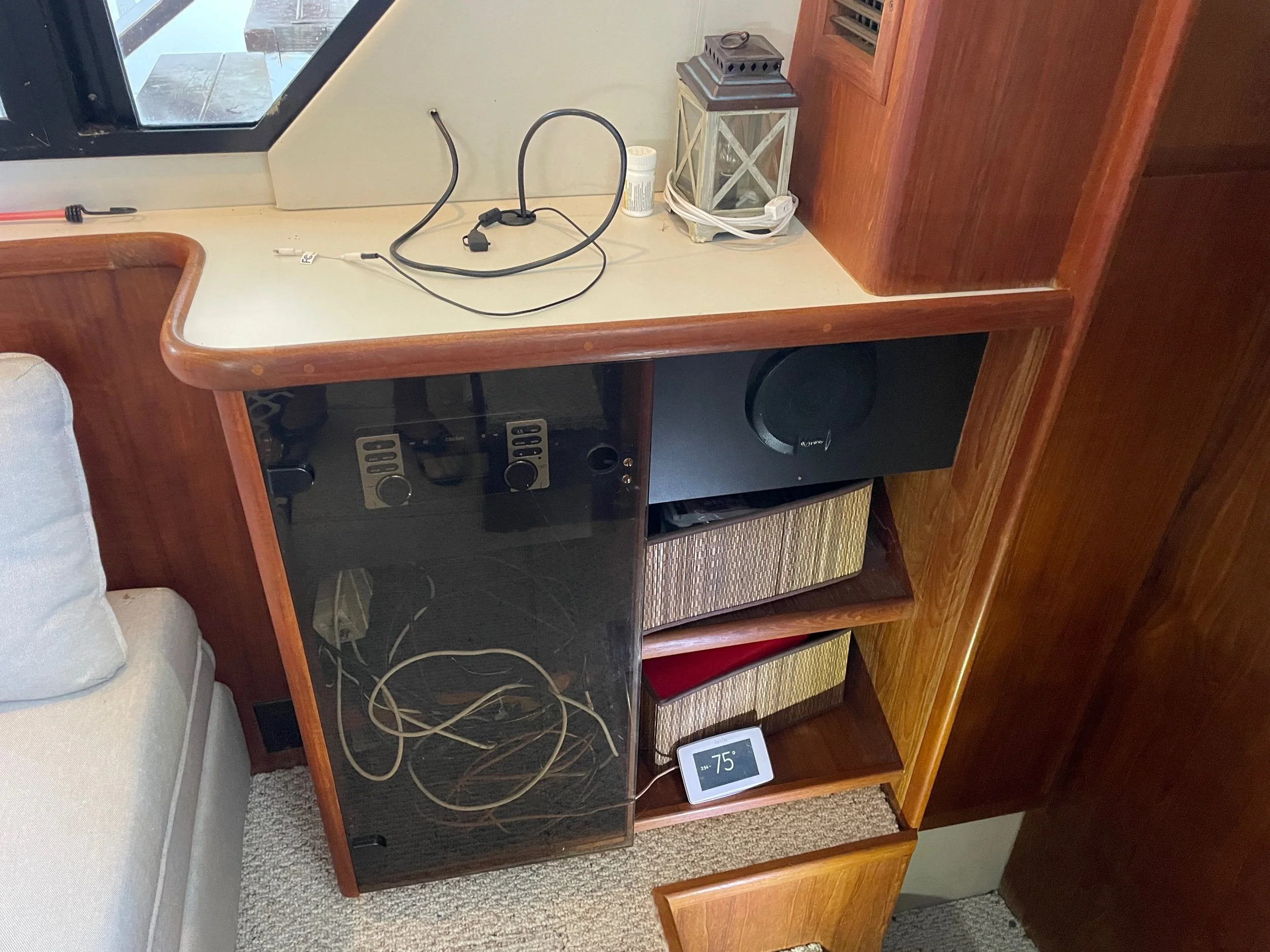 Dual Helm, Engine Sync, Ritchie Compass, Garmin GPS map 546, Hawk Eye Depth Finder, Upgraded Clarion Stereo with Remote and Dual helm subwoofers, West Marine VHF500 DSC, 2 Reverse Cycle Air Conditioners, Pressure Water, Water Heater, True Charge 40 Amp Multi-Stage Battery Charger, Fire Extinguishers, CO Alarms, Three Burner Princess Stove, GE Microwave Oven, Full Size Fridge, Teak Galley Sole, Seawolf Electric Windlass w/ foot pedal remote, Swim ladder and Bow Ladder, Upper Helm Eisenglass Enclosure.