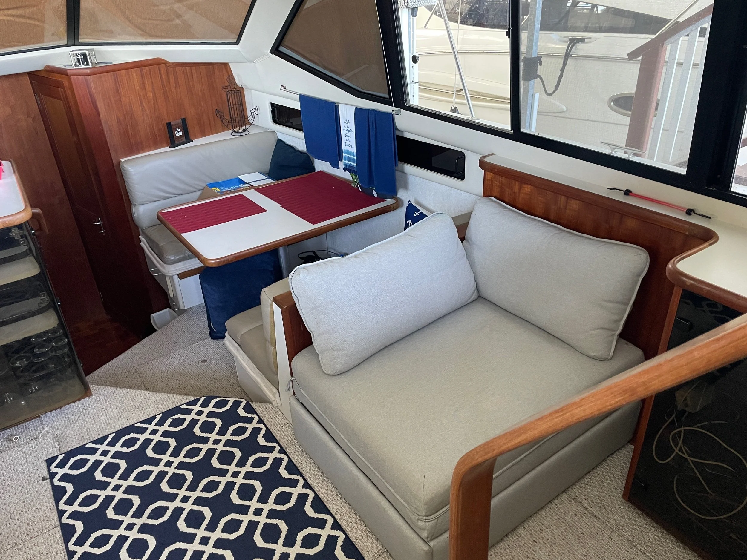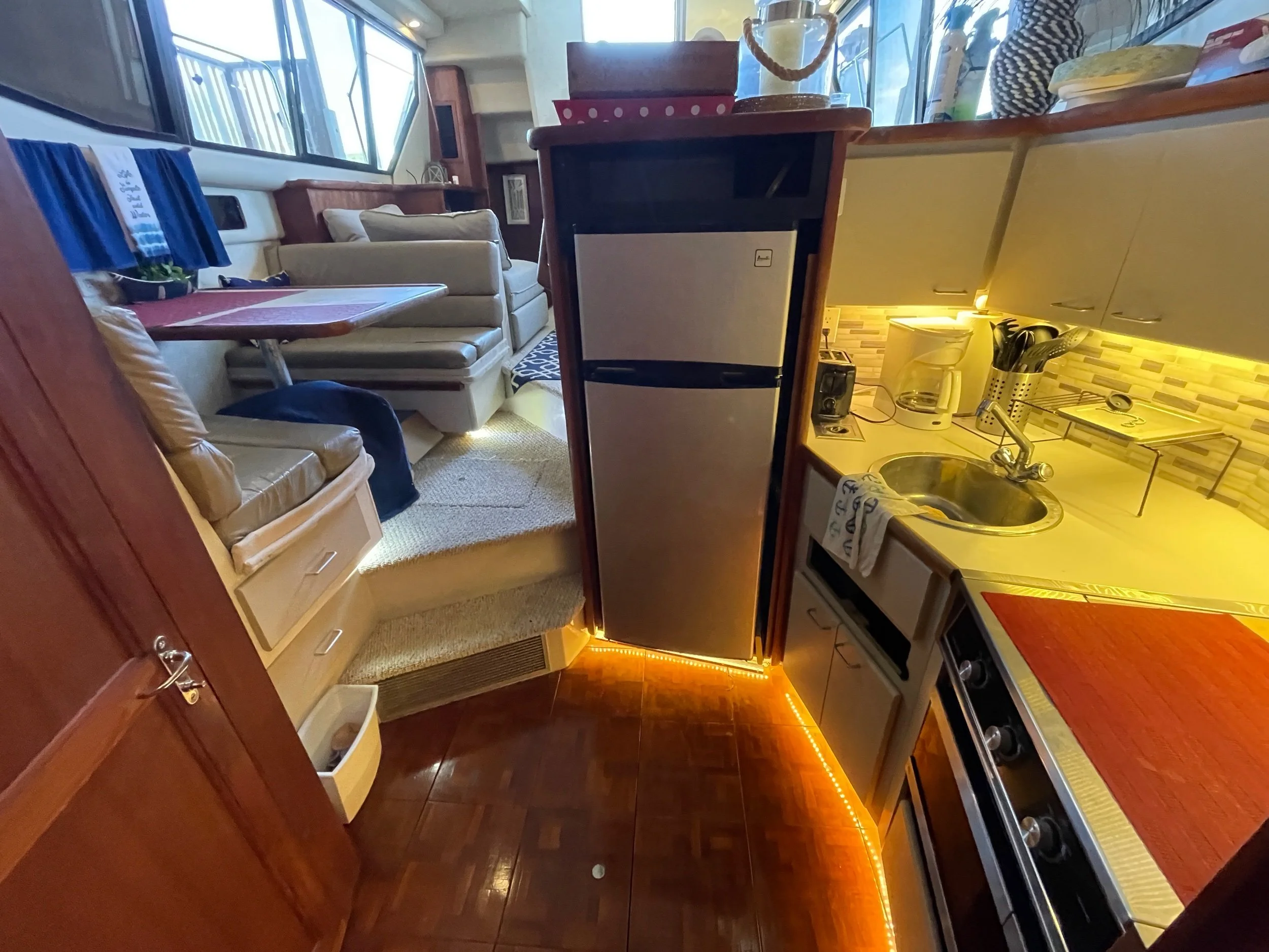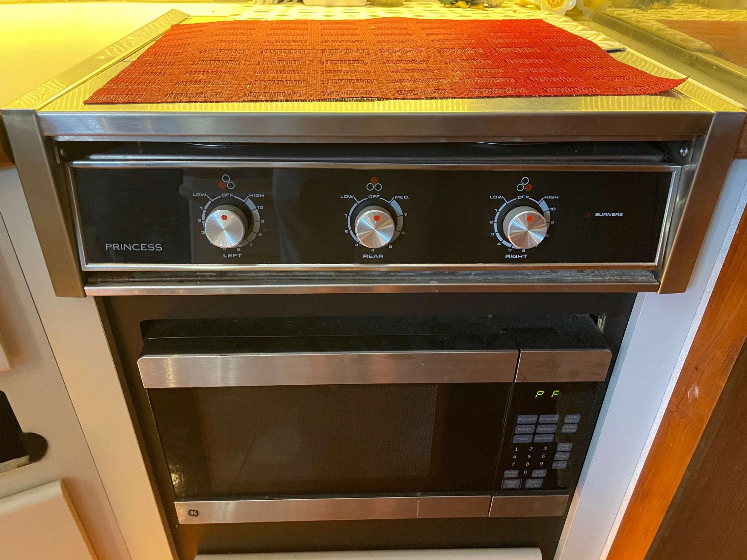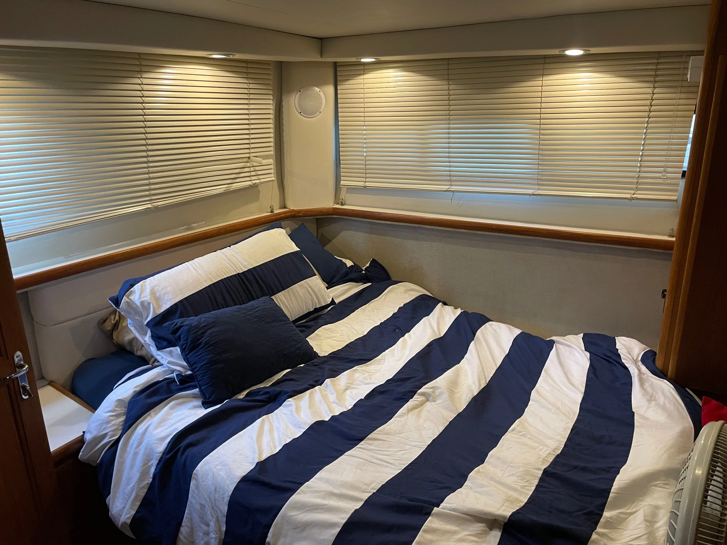 Dual Helm, Engine Sync, Ritchie Compass, Garmin GPS map 546, Hawk Eye Depth Finder, Upgraded Clarion Stereo with Remote and Dual helm subwoofers, West Marine VHF500 DSC, 2 Reverse Cycle Air Conditioners, Pressure Water, Water Heater, True Charge 40 Amp Multi-Stage Battery Charger, Fire Extinguishers, CO Alarms, Three Burner Princess Stove, GE Microwave Oven, Full Size Fridge, Teak Galley Sole, Seawolf Electric Windlass w/ foot pedal remote, Swim ladder and Bow Ladder, Upper Helm Eisenglass Enclosure.