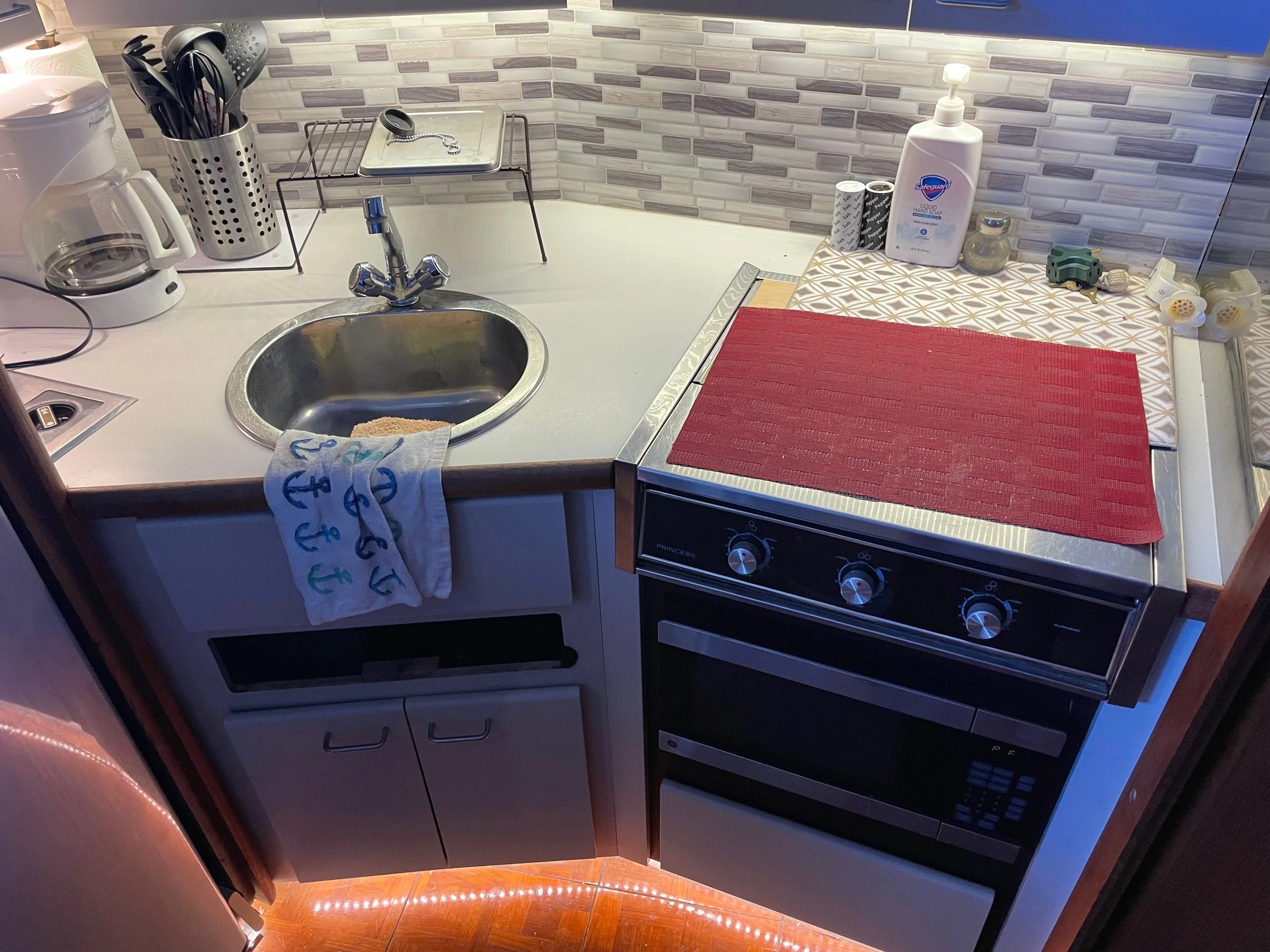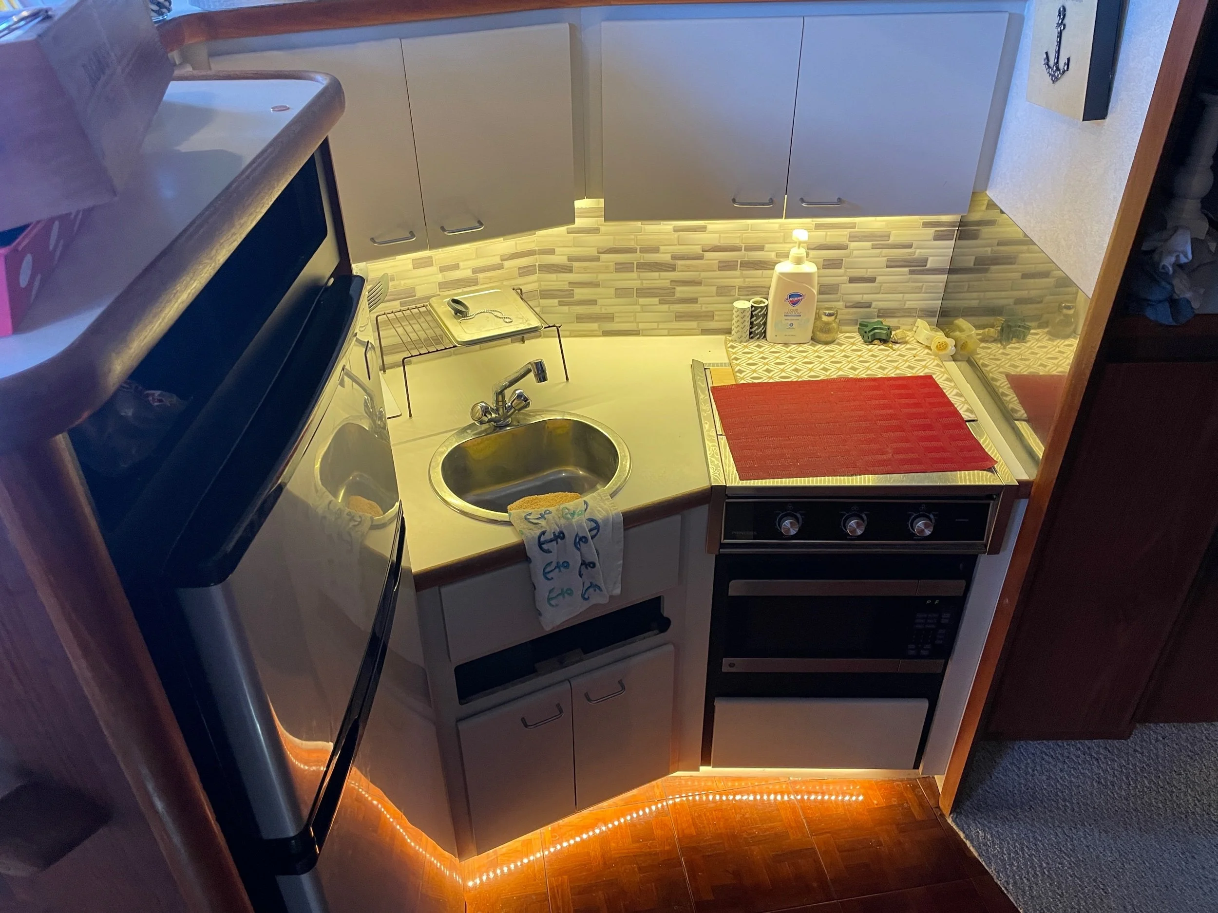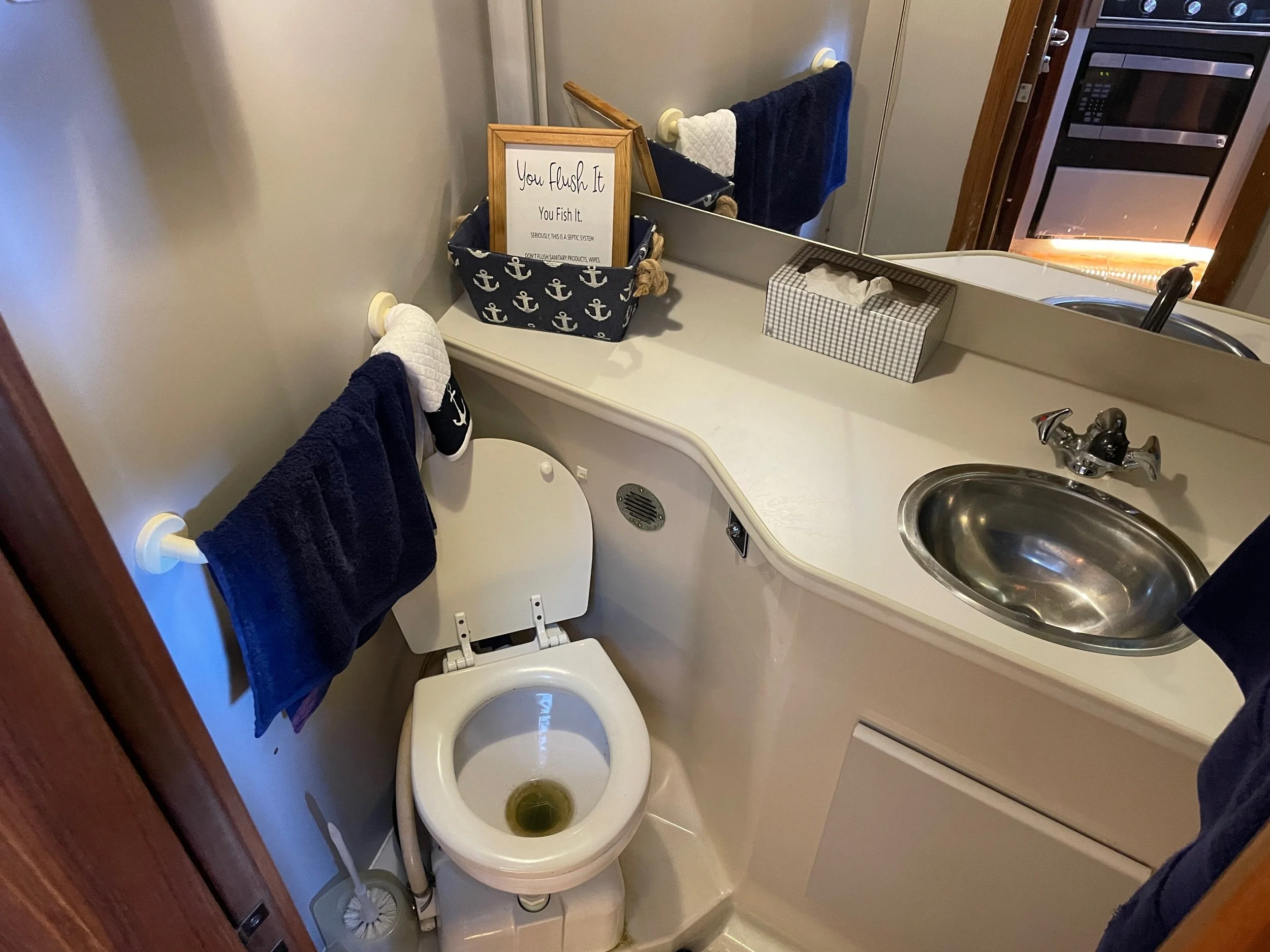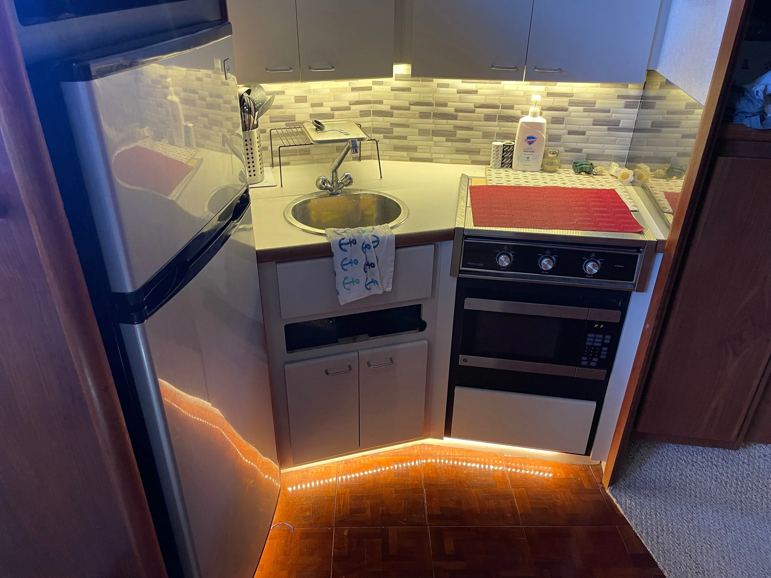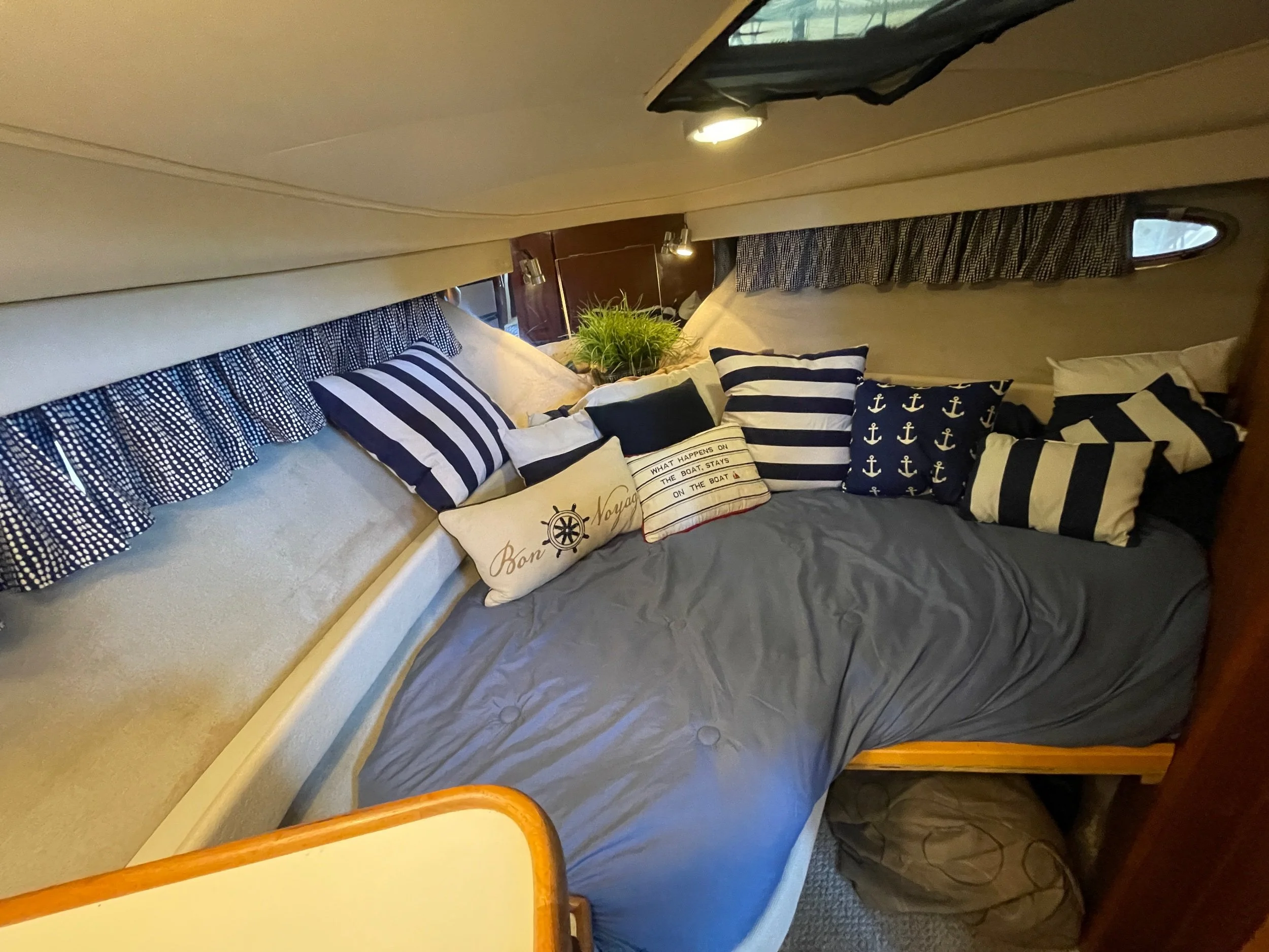 Dual Helm, Engine Sync, Ritchie Compass, Garmin GPS map 546, Hawk Eye Depth Finder, Upgraded Clarion Stereo with Remote and Dual helm subwoofers, West Marine VHF500 DSC, 2 Reverse Cycle Air Conditioners, Pressure Water, Water Heater, True Charge 40 Amp Multi-Stage Battery Charger, Fire Extinguishers, CO Alarms, Three Burner Princess Stove, GE Microwave Oven, Full Size Fridge, Teak Galley Sole, Seawolf Electric Windlass w/ foot pedal remote, Swim ladder and Bow Ladder, Upper Helm Eisenglass Enclosure.