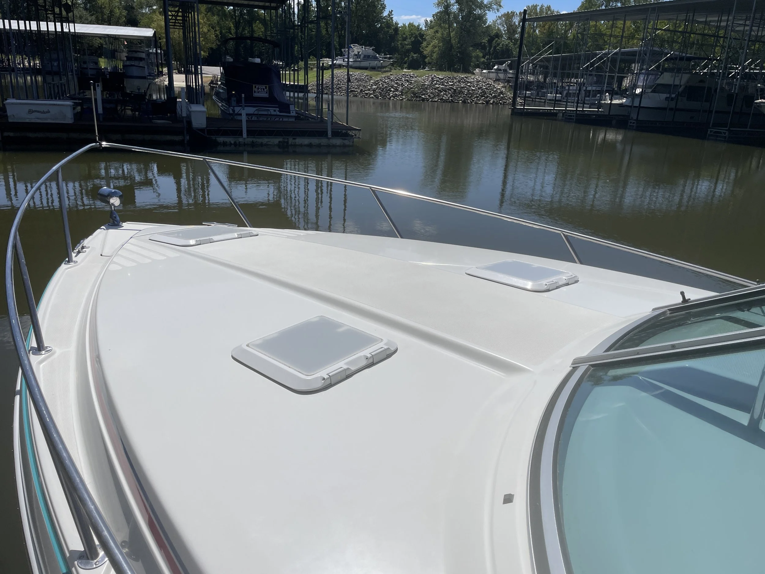 Twin 5.7 L Mercruisers with Bravo Drives: With a pair of reliable 5.7-liter Mercruiser engines paired with Bravo Drives, you can expect both power and efficiency. These engines have accumulated only 875 hours and have undergone recent water pump replacements, along with a full maintenance cycle, ensuring they're in peak condition for your next voyage.